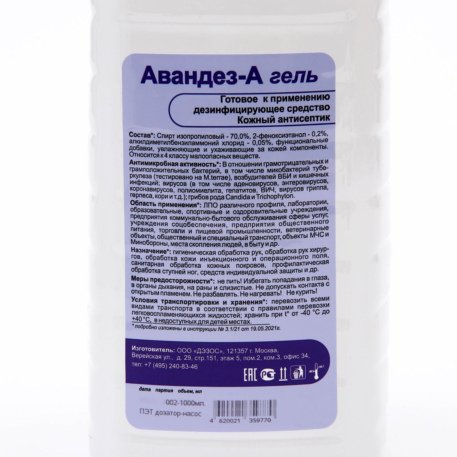 Антисептик Авандез-А-гель, дозатор-насос, 1 л