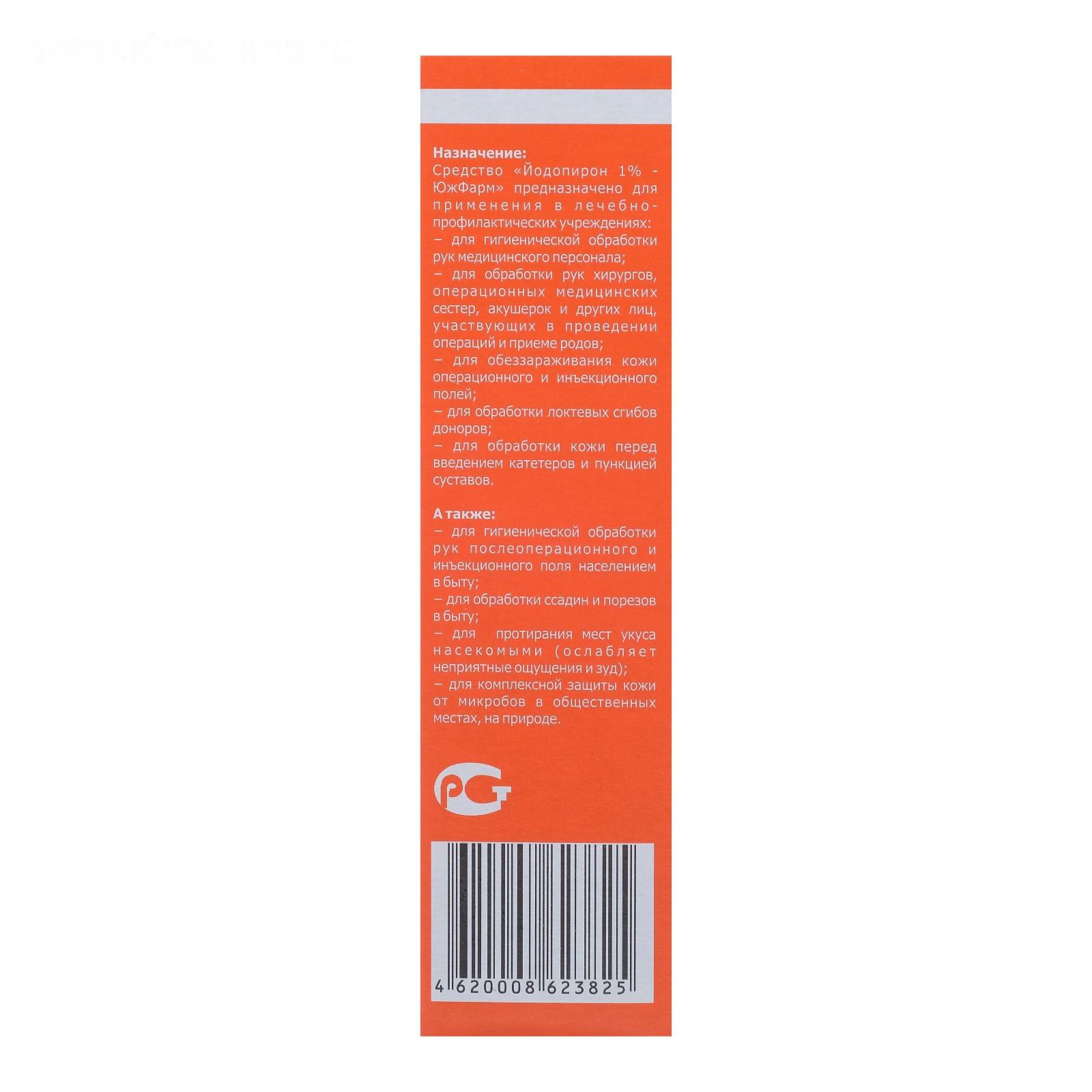 Йодопирон водно-спиртовой - эффективен при обработке рук и защиты от вредоносных инфекций. В отличие от хлоргексидина обладает пролонгированным эффектом. При нанесении йодопирон создает бактерицидную пленку, которая защищает от проникновения микробов вне менее 5 часов, быстро впитывается и не оставляет следов.