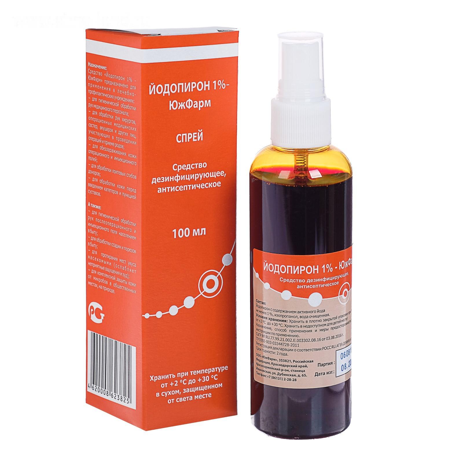 Антисептик спрей "Йодопирон" 1% водно-спиртовый, противовирусный, 100 мл