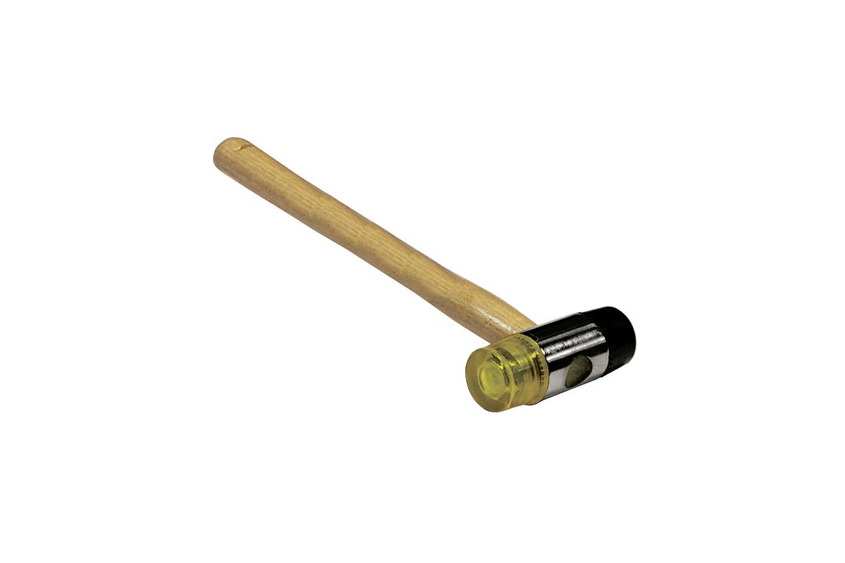 Ударная часть инструмента изготовлена из пластмассы. Рукоятка молотка произведена из дерева твердых пород, что продлевает срок службы инструмента. Киянка снабжена сменными бойками из пластмассы и резьбовым креплением для удобной и быстрой смены бойка. Применяется во время работы с материалами чувствительными к механическим воздействиям, например с тонким листовым металлом. Размер инструмента 45 мм.