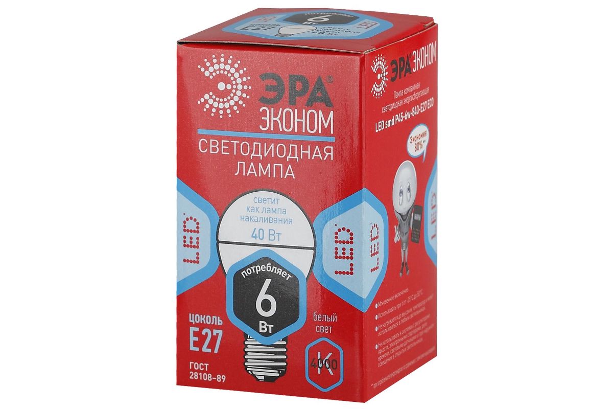 Лампа светодиодная ЭРА LED smd Р45-6w-840-E27 ECO (10/100/3000)