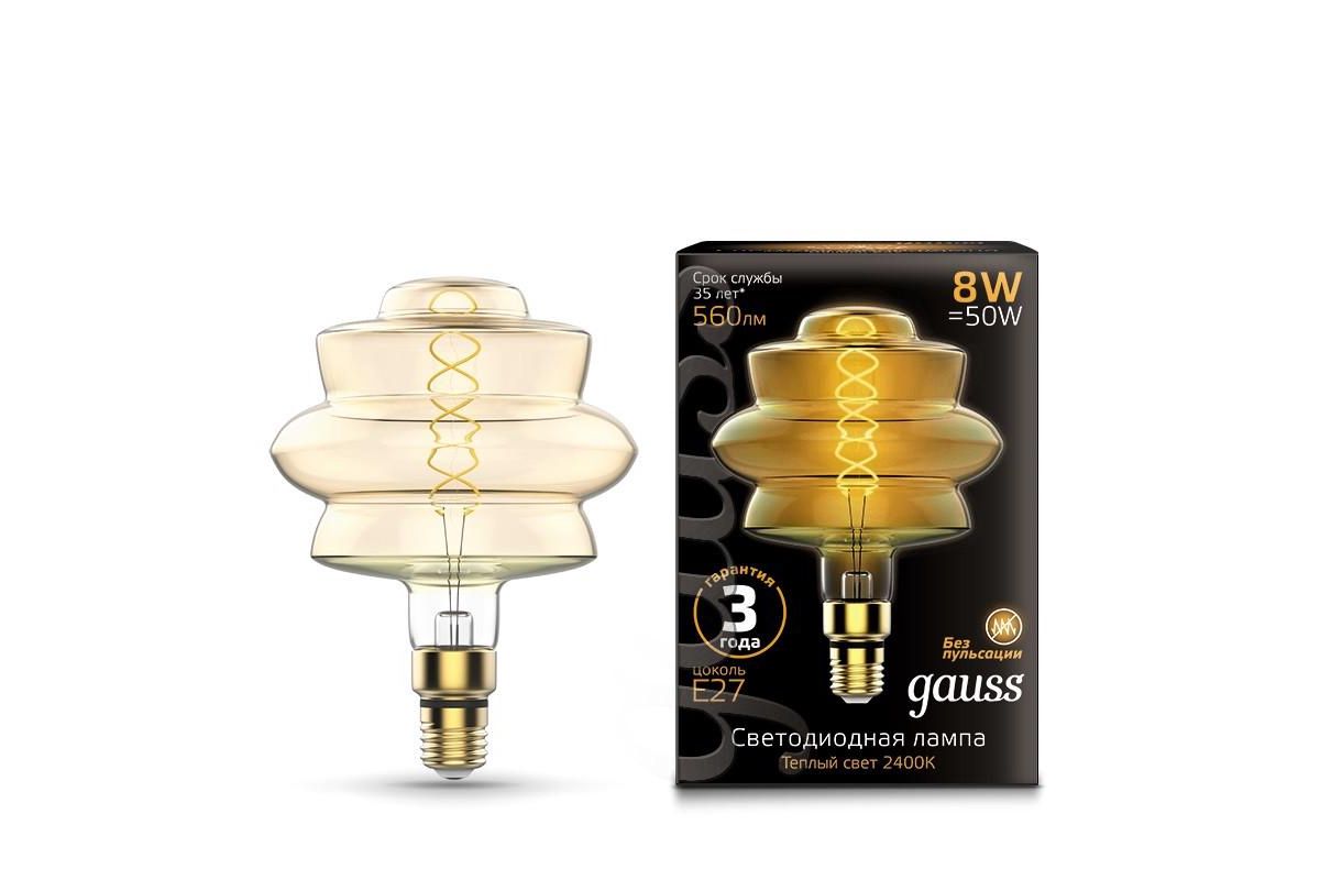 Лампа GAUSS 161802008 Led Vintage Filament Flexible BD180 8W 560lm E27 180*250mm Golden 2400K 1/4