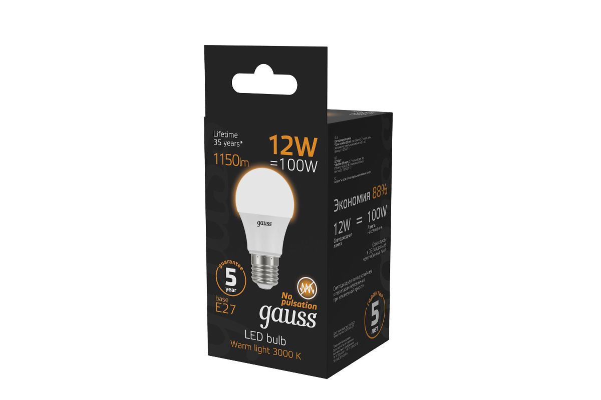 Лампа светодиодная GAUSS LED A60 globe 12W E27 2700K арт. 102502112