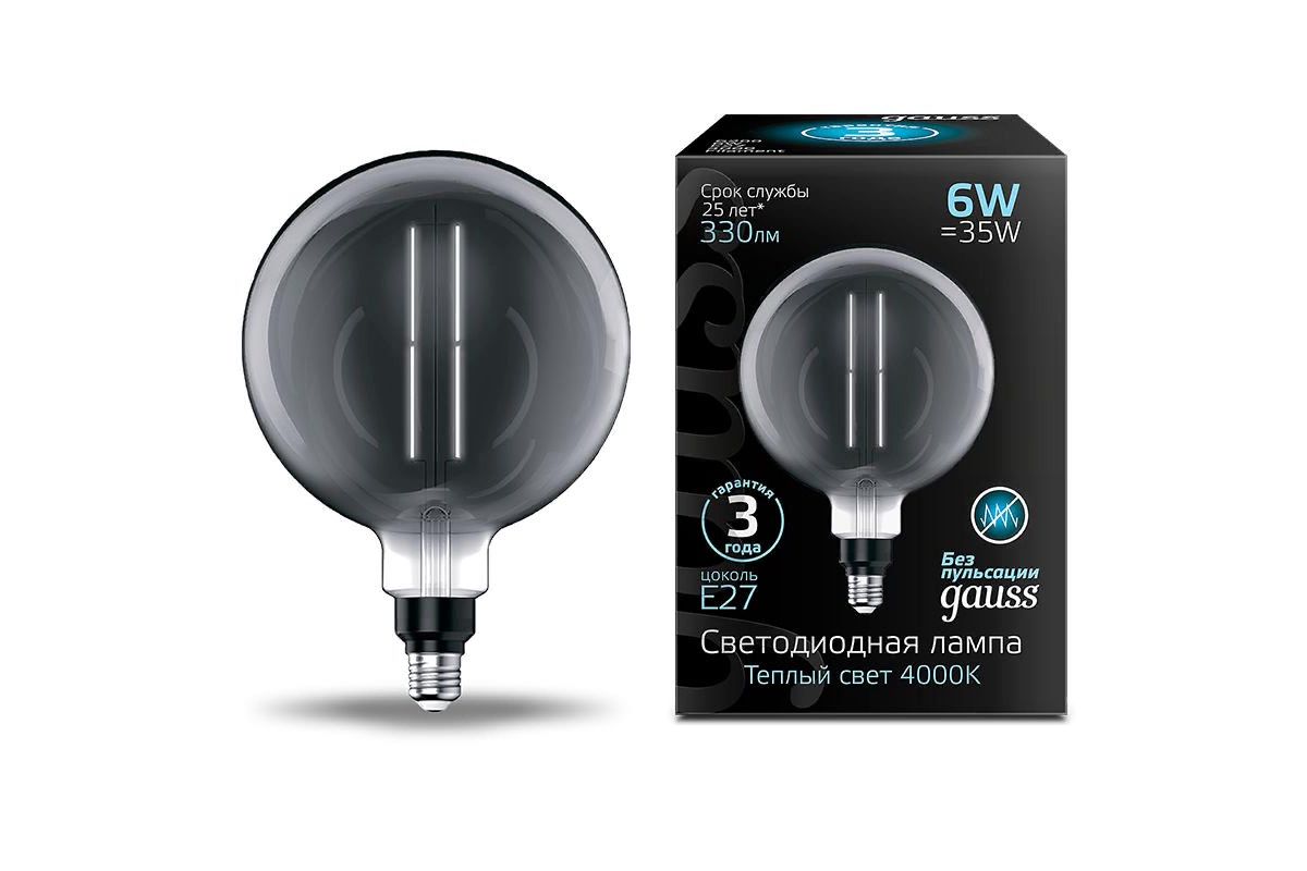 Лампа GAUSS LED Vintage Filament Straight G200 6W E27 200x283mm Gray 330lm 4000K 1/6 154802205