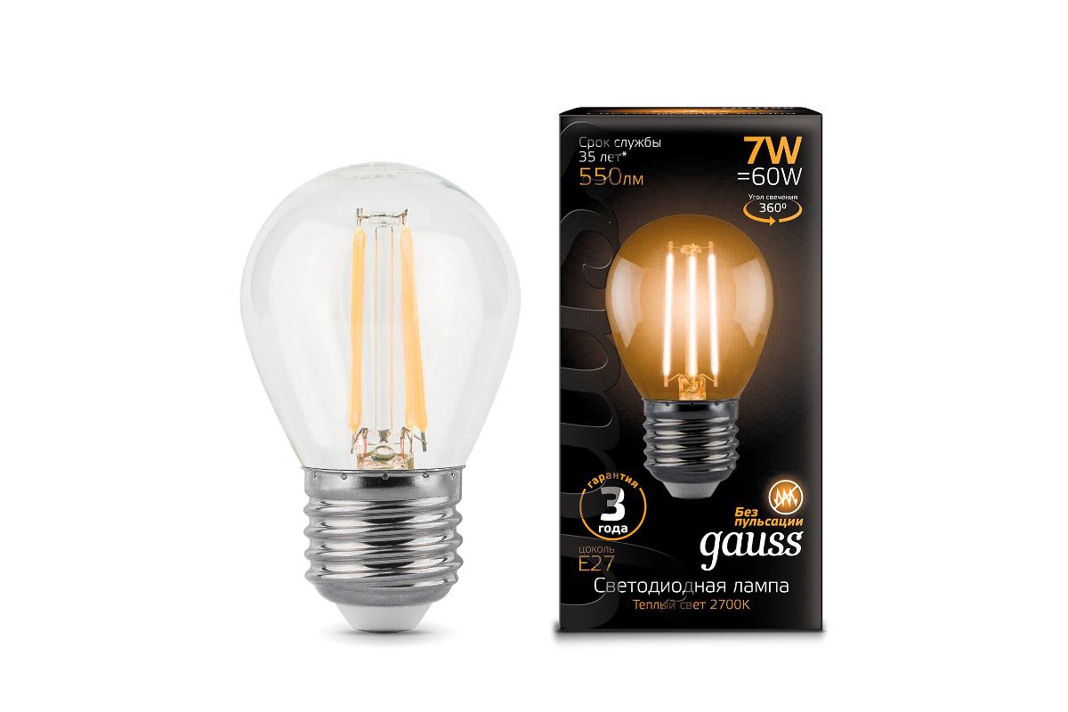 Лампа GAUSS 105802107 led filament globe e27 7w 2700k 1/10/50 Лампа Gauss LED Filament Globe E27 7W 2700K 1/10/50