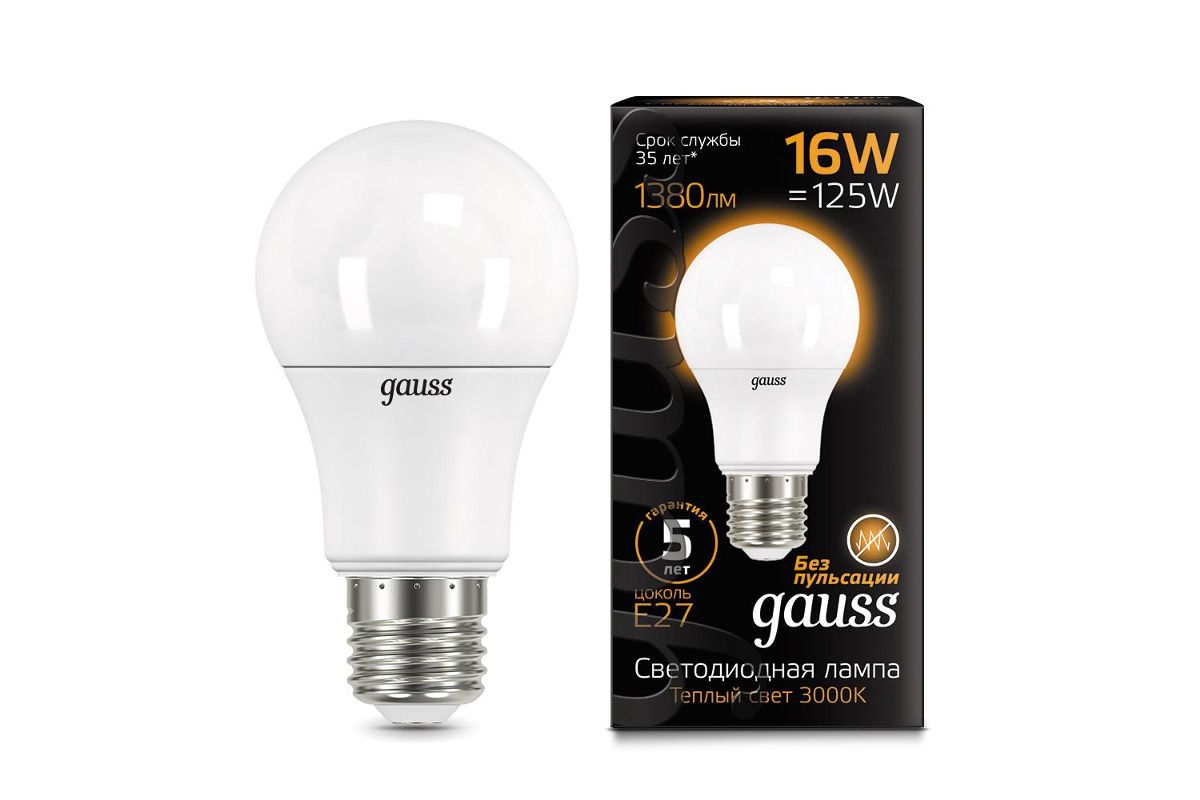 Лампа Gauss LED A60 16W E27 1380lm 3000K 1/10/50