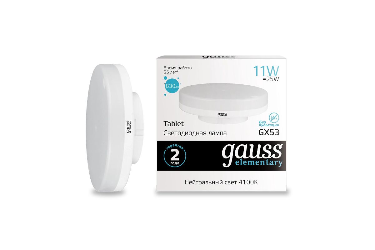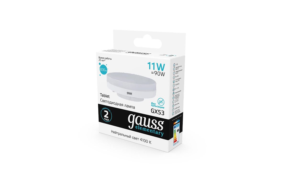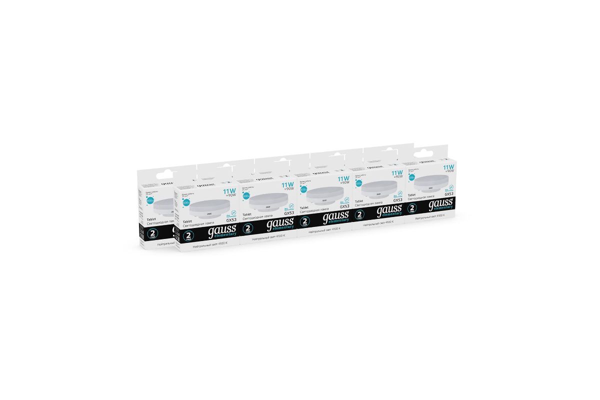 Лампа GAUSS LED Elementary 83821 GX53 11w 4100k 1/10/100 Лампа Gauss LED Elementary GX53 11W 4100K 1/10/100