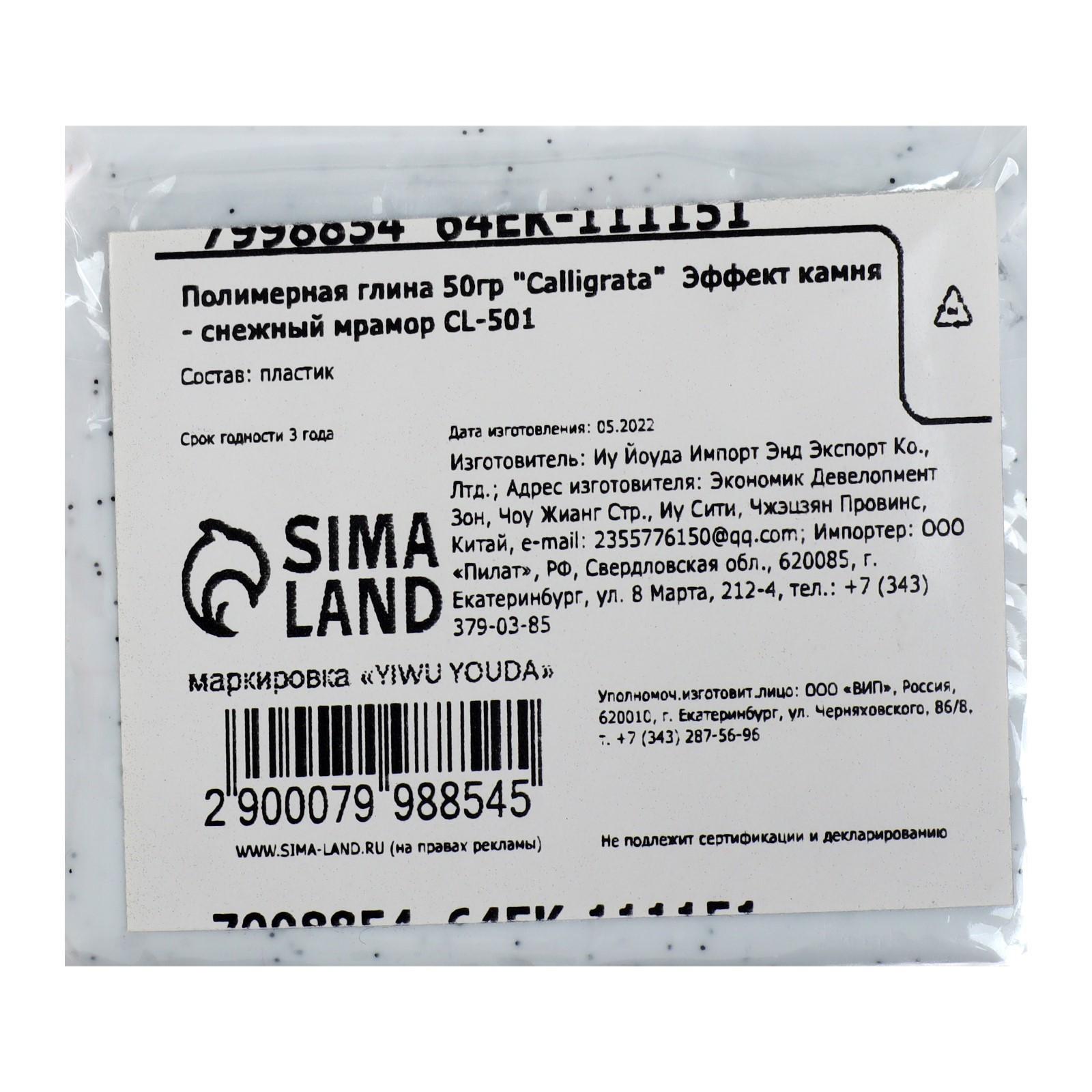 Полимерная глина 50гр "Calligrata" Эффект камня - снежный мрамор CL-501