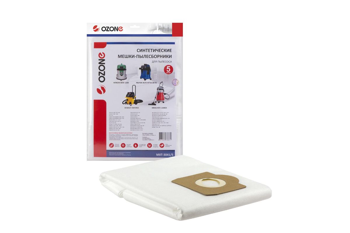 Мешки для пылесоса KRESS 1200 NTX EA, HITACHI WDE 1200, AEG, BOSCH, BORT, DEWALT, NILFISK, PROTOOL, PORTOTECNICA, SOTECO, SPARKY, 5 шт., синтетические, не боятся мокрой пыли, бренд: OZONE, арт. MXT-3041/5