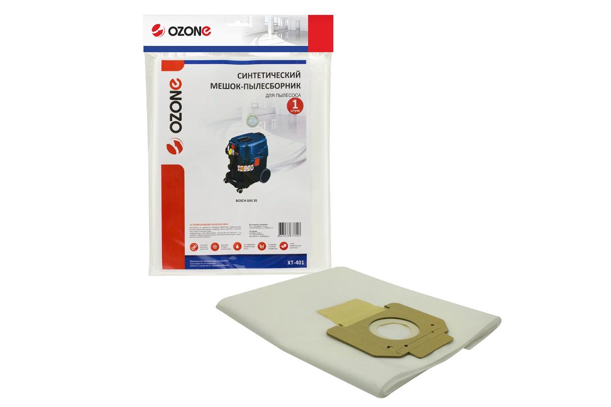 Мешок для пылесоса BOSCH GAS 35, 1 шт., синтетический, не боится мокрой пыли, бренд: OZONE, арт. XT-401