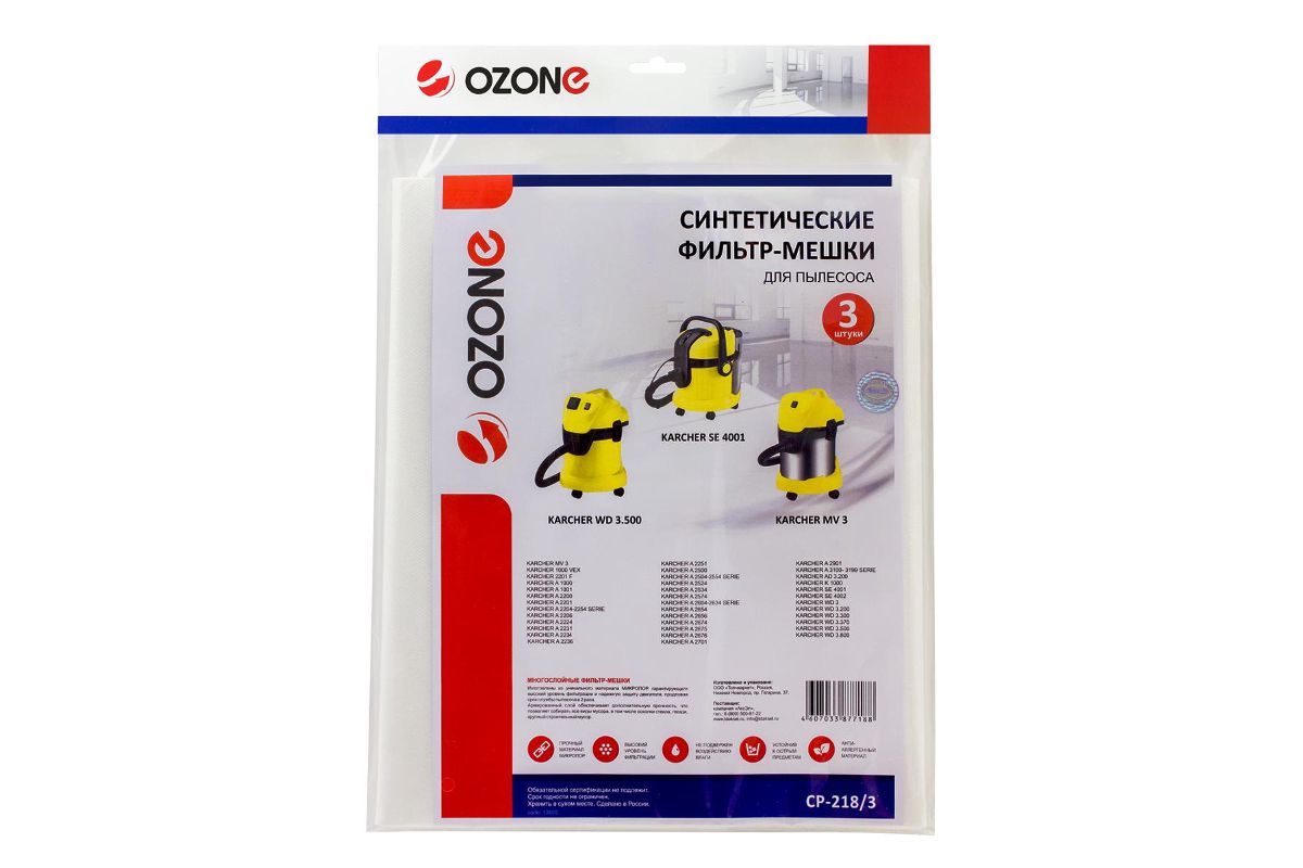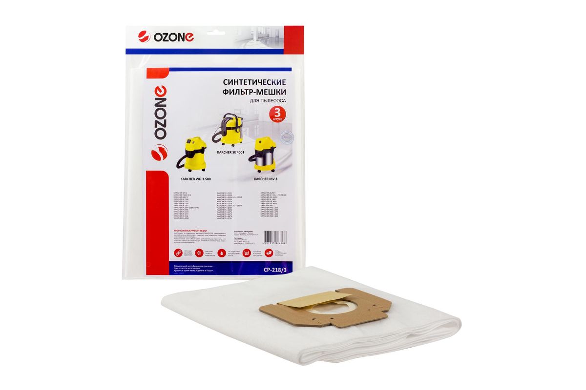 Фильтр-мешки для пылесоса KARCHER MV 3, WD 3, 3 шт., синтетика, не боятся мокрой пыли, бренд: OZONE, арт. CP-218/3.