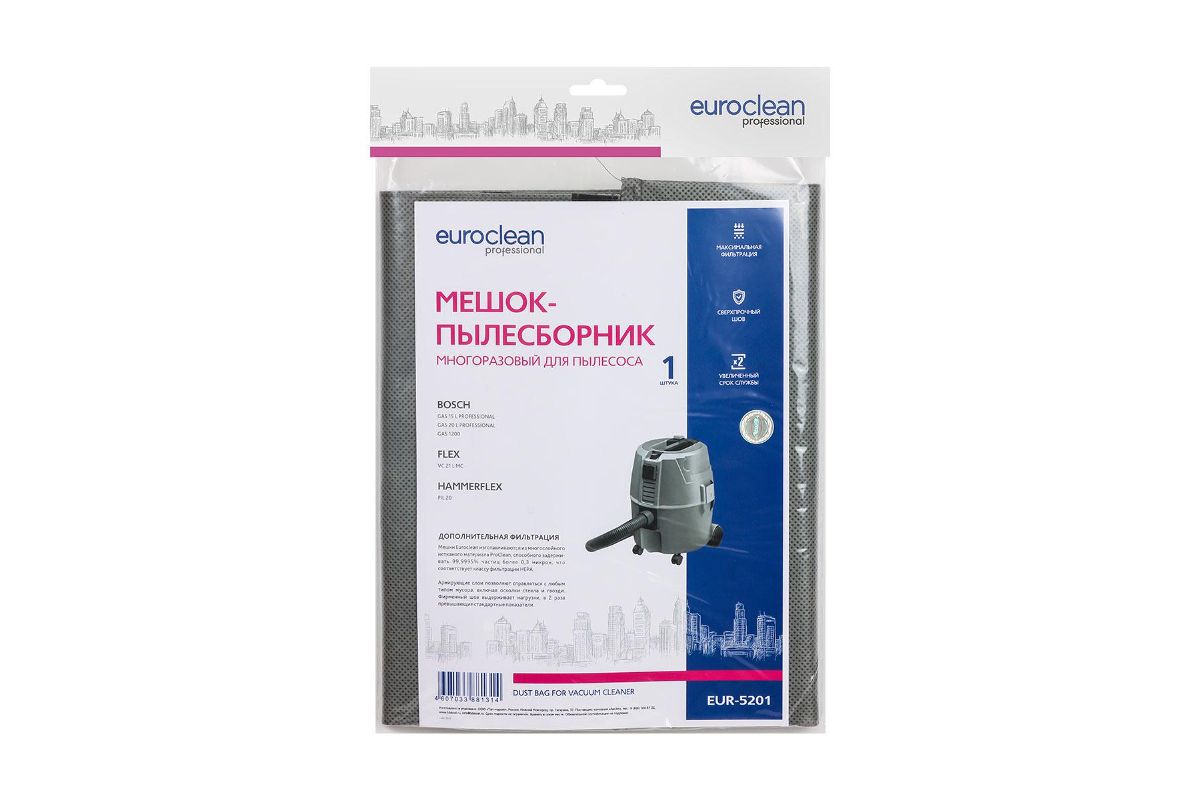 Многоразовый мешок с текстильной застежкой для пылесоса BOSCH GAS 15, BOSCH GAS 20, FLEX, HAMMER, 1 шт., синтетический, бренд: EUROCLEAN, арт. EUR-5201.