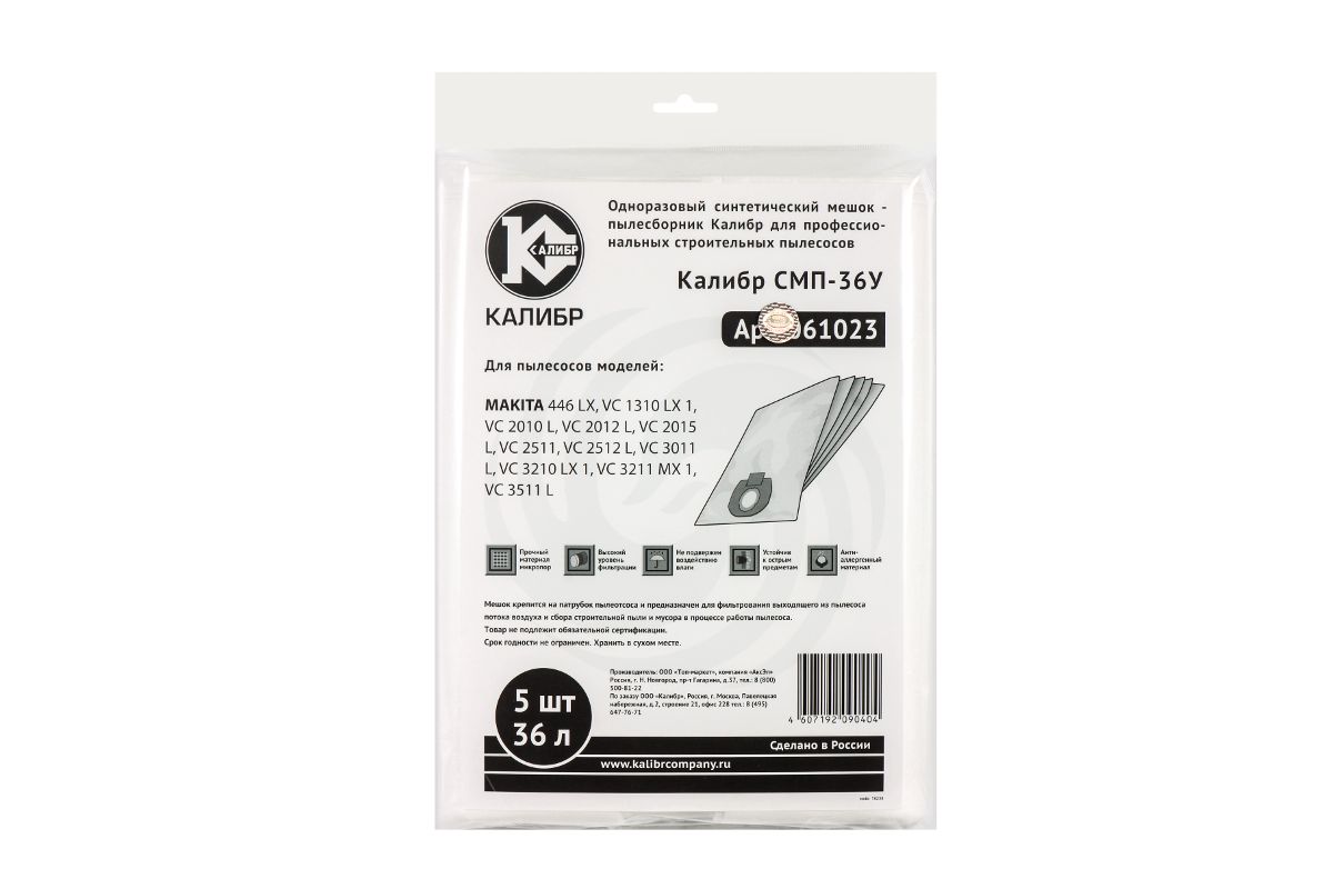 Мешки пылесборники «Калибр СМП-36У» для профессиональных пылесосов до 36л. 5шт (MAKITA: 446LX, VC1310LX1, VC2010L, VC2012L, VC2015L, VC2511, VC2512L, VC3011L, VC3210LX1, VC3211MX1, VC3511L)