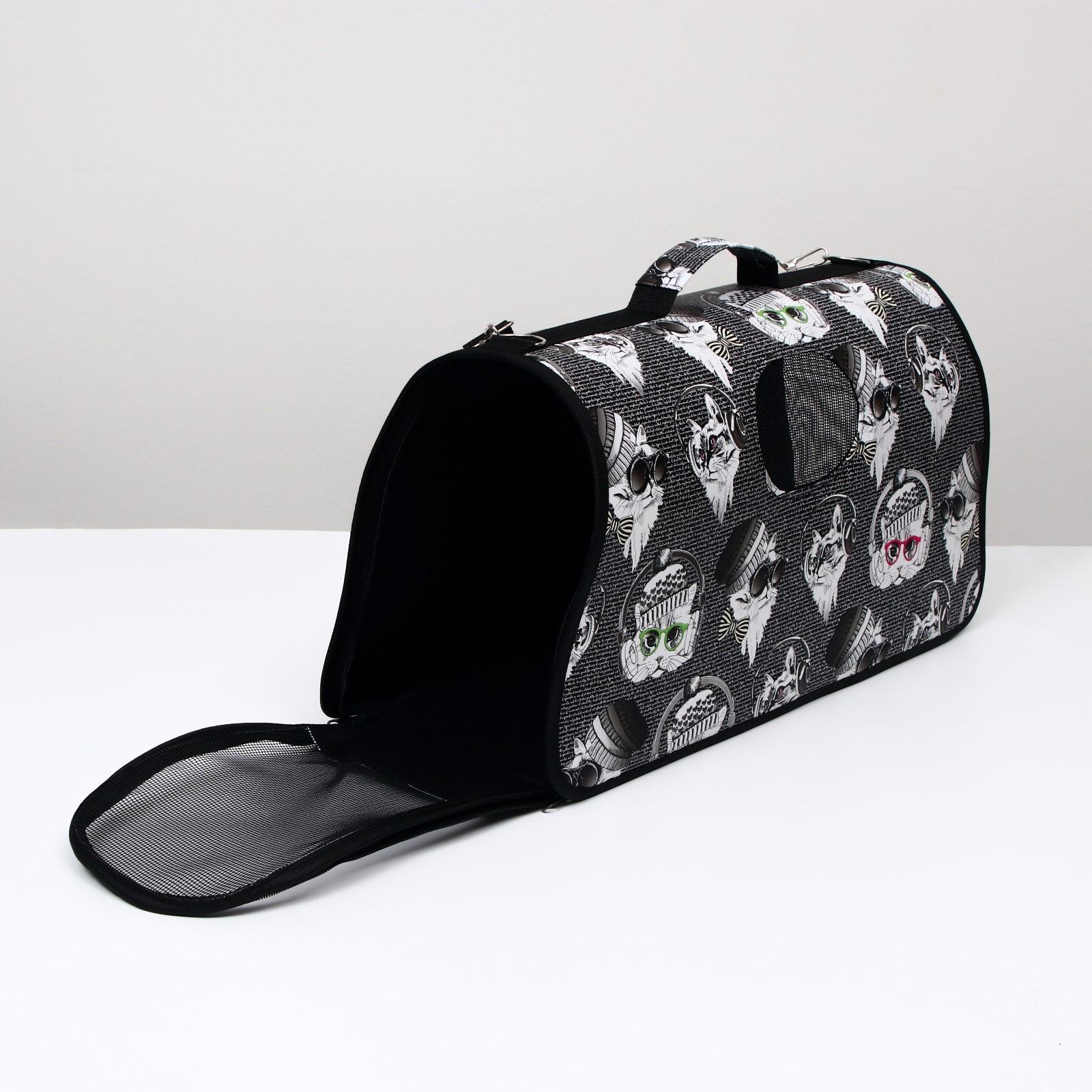 Сумка-переноска для кошек и собак, каркасная «Зимние коты», размер L, 53 х 21 х 29 см