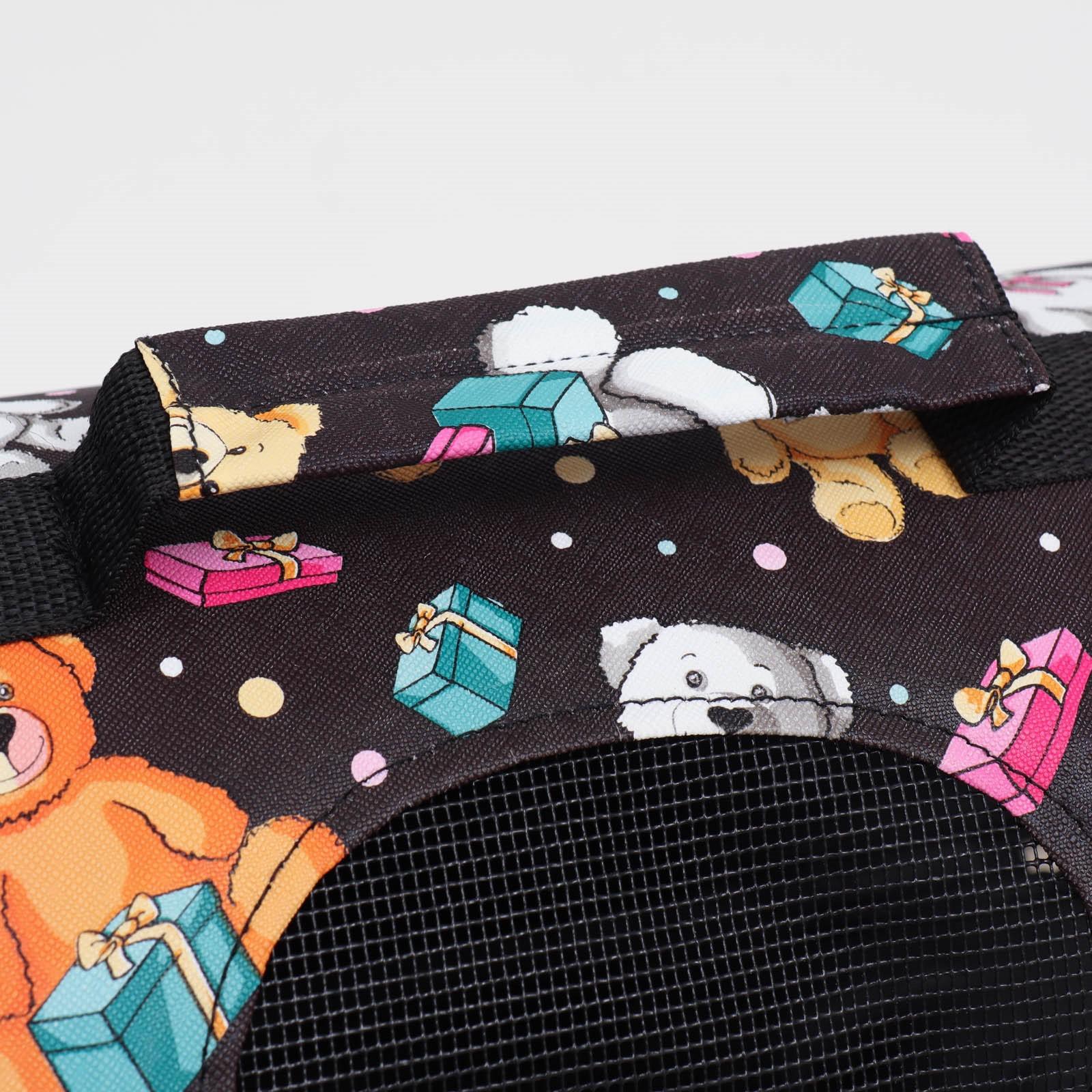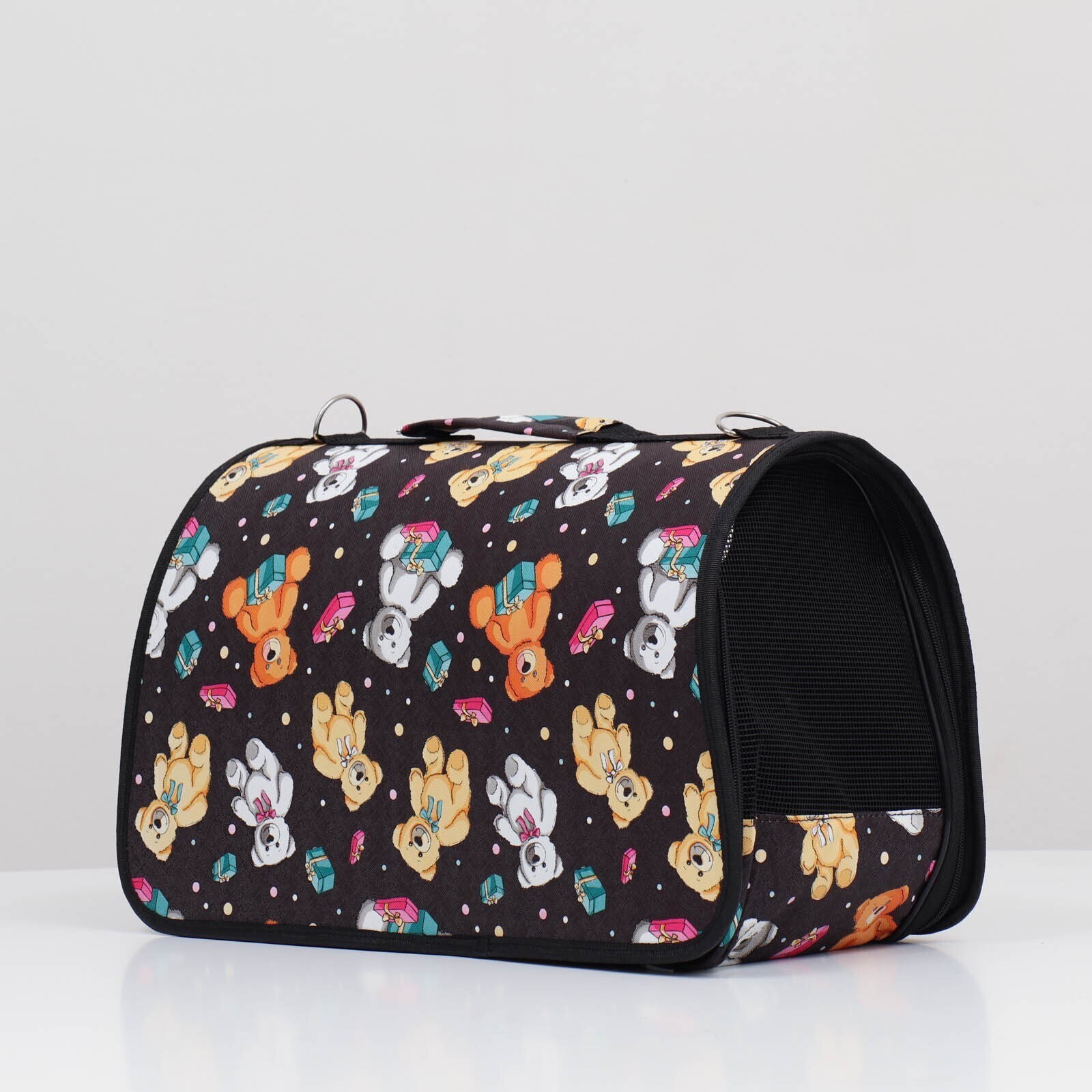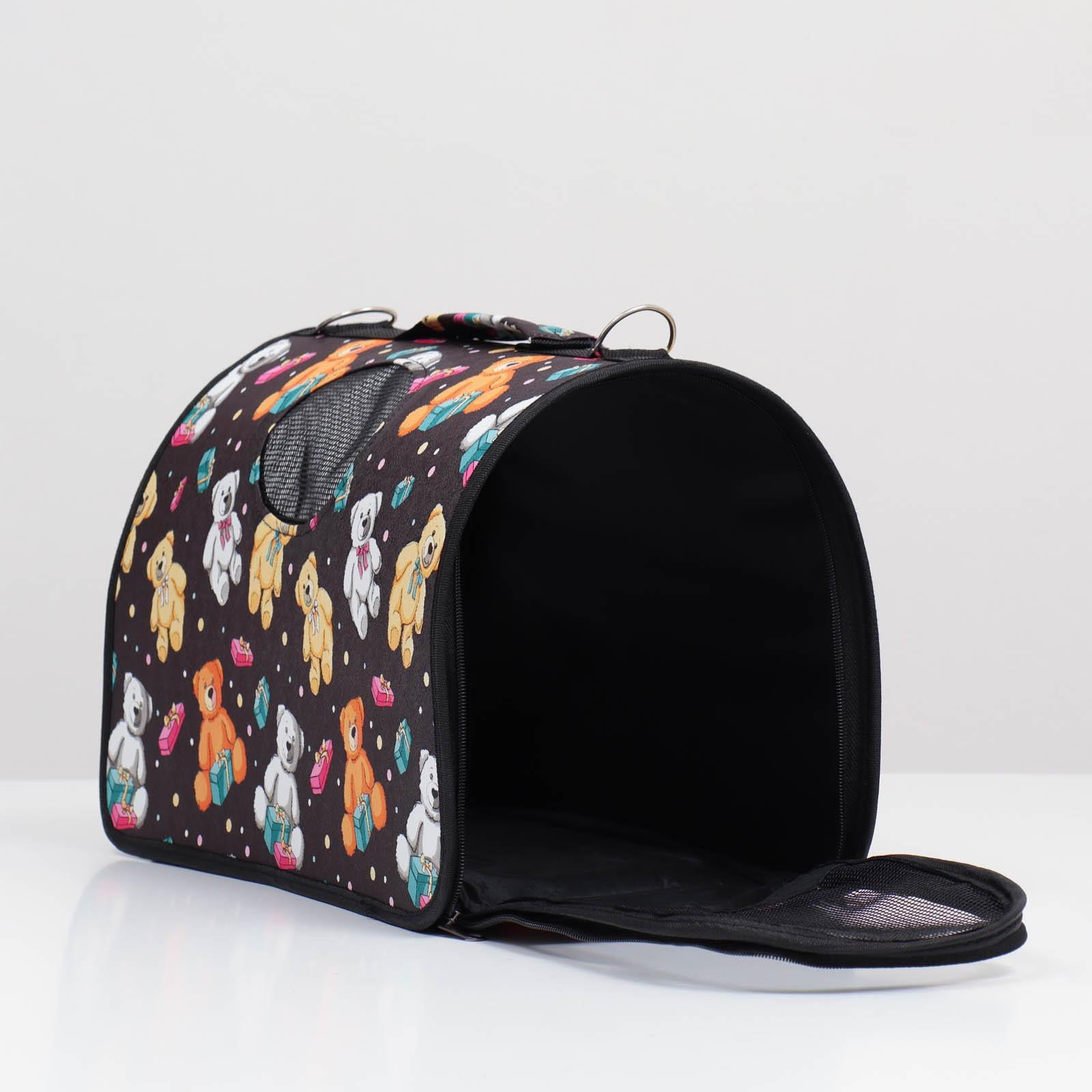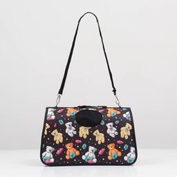 Сумка-переноска каркасная "Медведи на черном фоне", размер L, 52 х 28 х 28 см