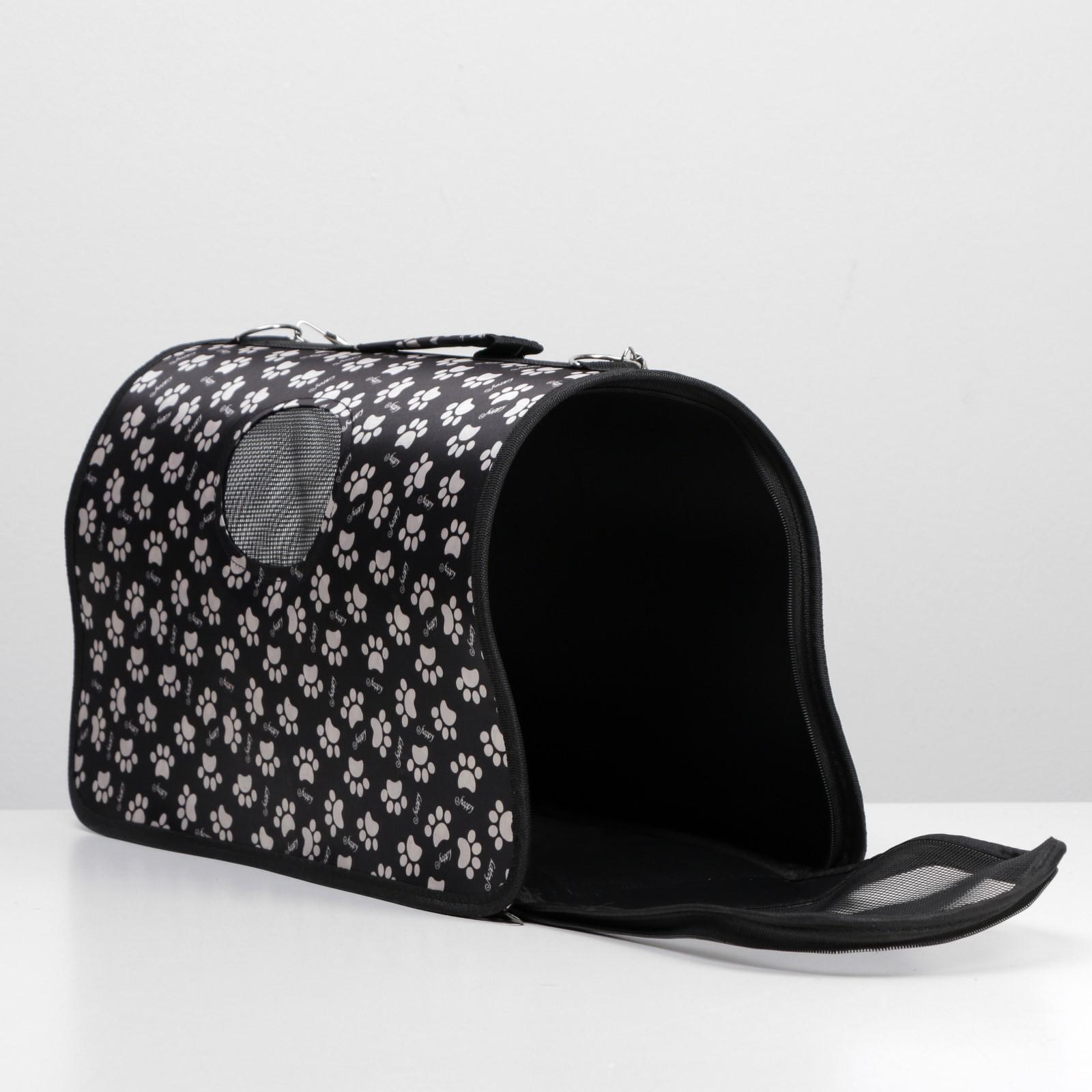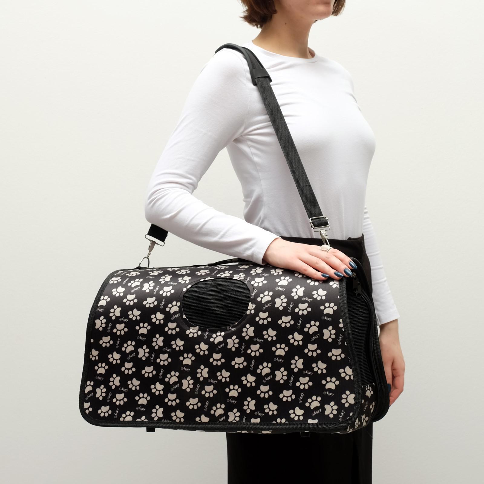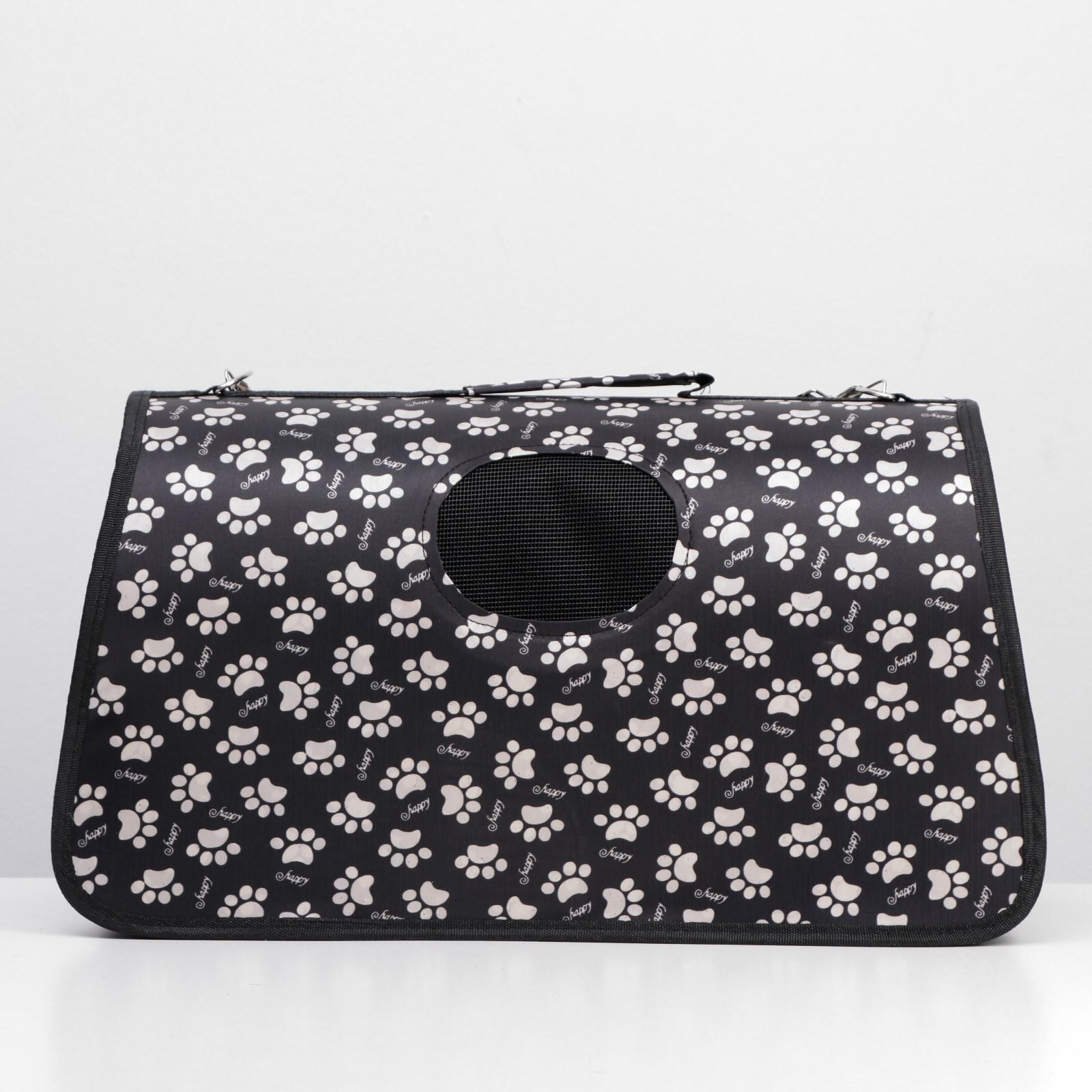Сумка-переноска для кошек и собак, каркасная «Лапки Happy», размер L, 53 х 21 х 29 см, чёрная