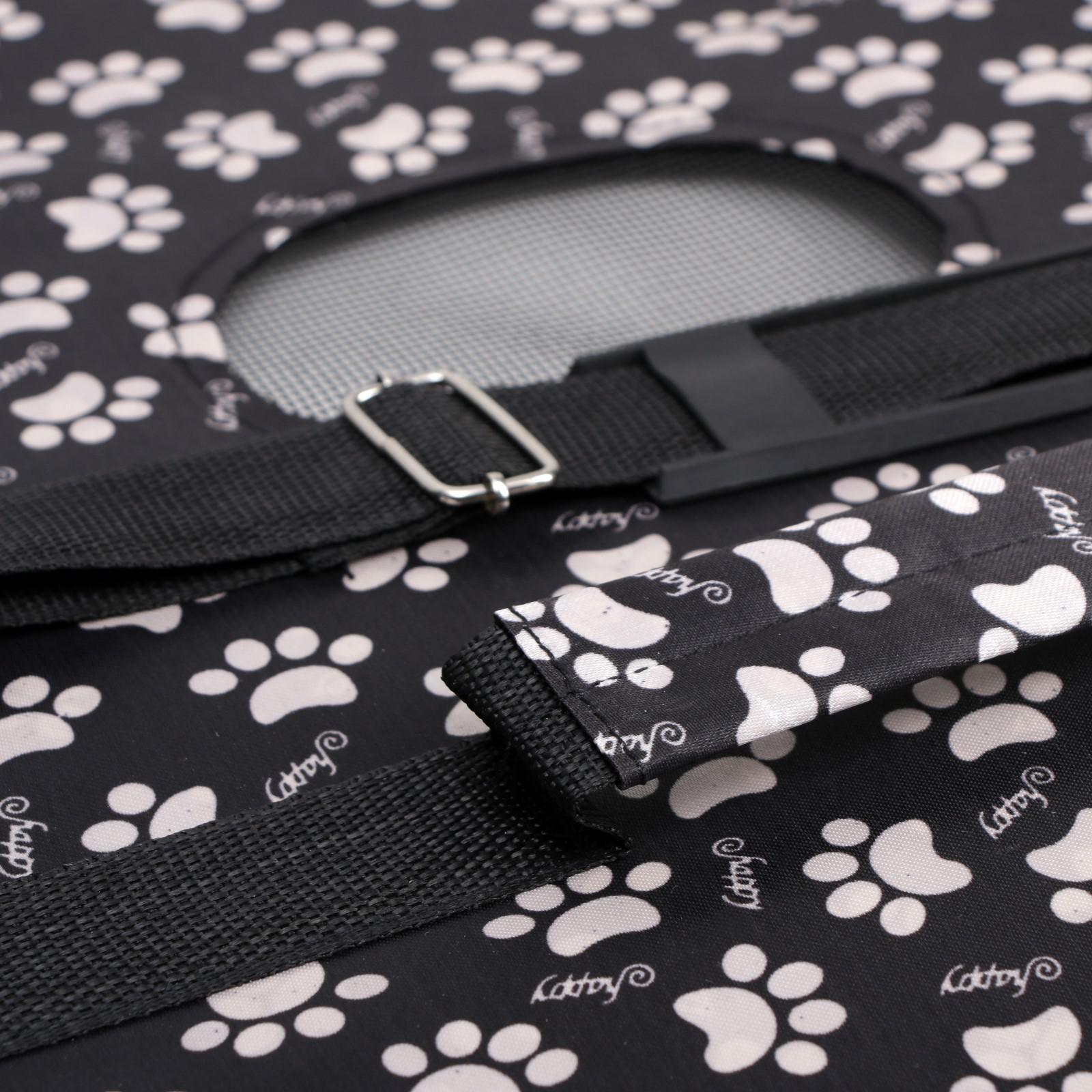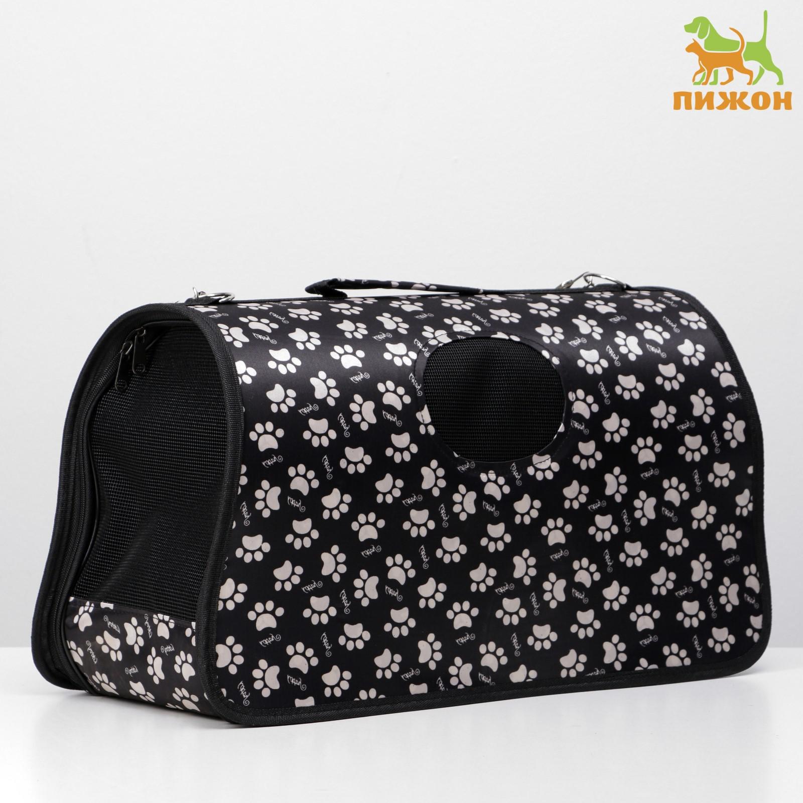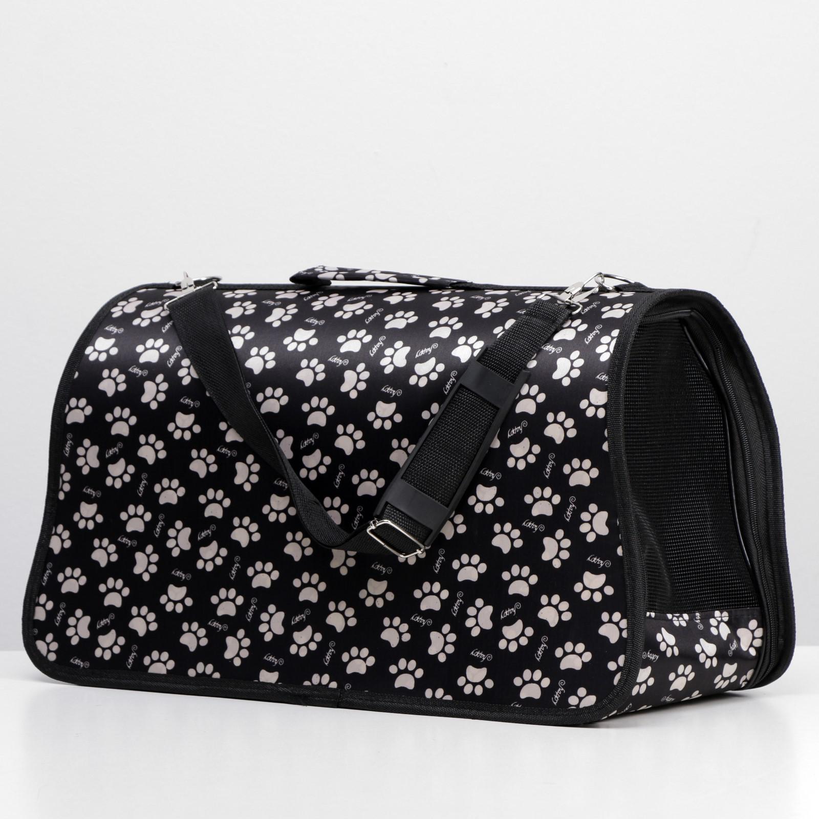 Сумка-переноска для кошек и собак, каркасная «Лапки Happy», размер L, 53 х 21 х 29 см, чёрная