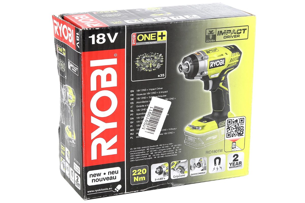 RYOBI RID1801M БЕЗ АКК. и ЗУ — аккумуляторный ударный гайковерт для завинчивания/вывинчивания гаек, винтов, шурупов. Модель завинчивает длинные винты и шурупы с максимальным усилием. Скорость вращения удобно регулируется для выполнения разноплановых задач. Яркие светодиоды позволяют работать в плохо освещенных местах. Максимальное число оборотов — 3200 об/мин. Максимальное число ударов — 3400 в минуту. Аккумулятор и зарядное устройство не поставляются в комплекте.