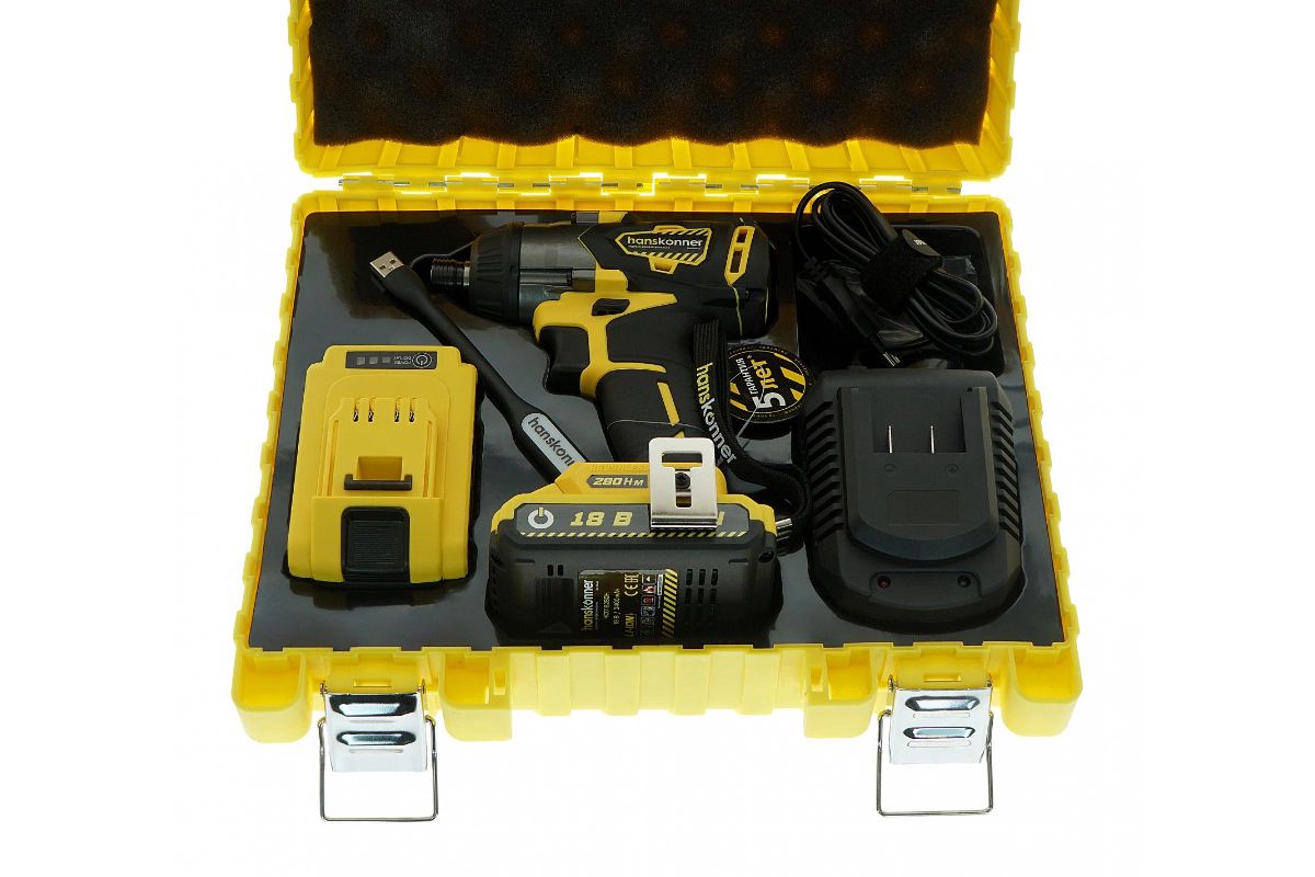 Винтоверт HANSKONNER HCD18280H акк.б/щ.18В,280Нм,2 акк.Li-Ion 2,4Ач,3 скор,1/4'',быст.зар,OneBat,