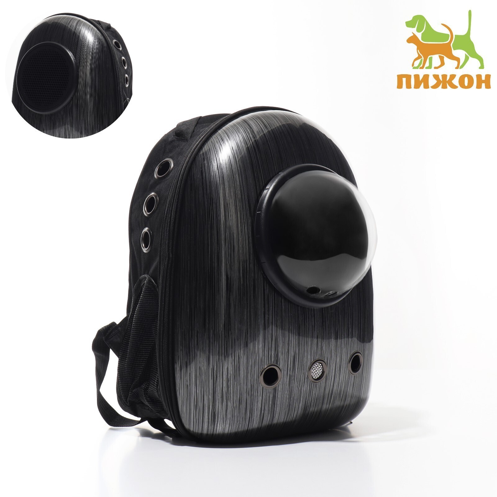 Рюкзак для переноски животных с окном для обзора "Черный металл", 32 х 26 х 44 см