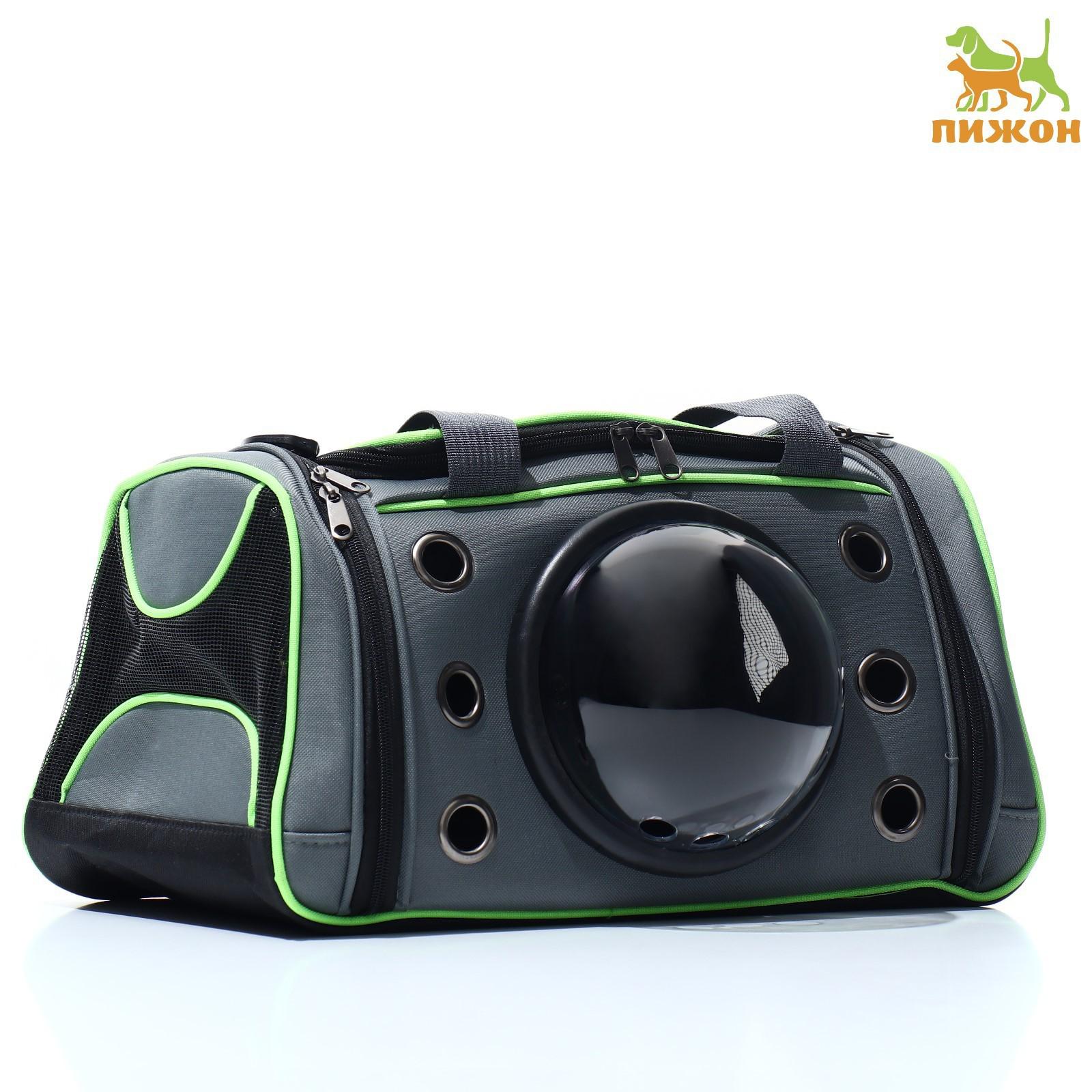 Сумка-переноска с окном-иллюминатором, большая, 50*28*28 см, серая/зелёная