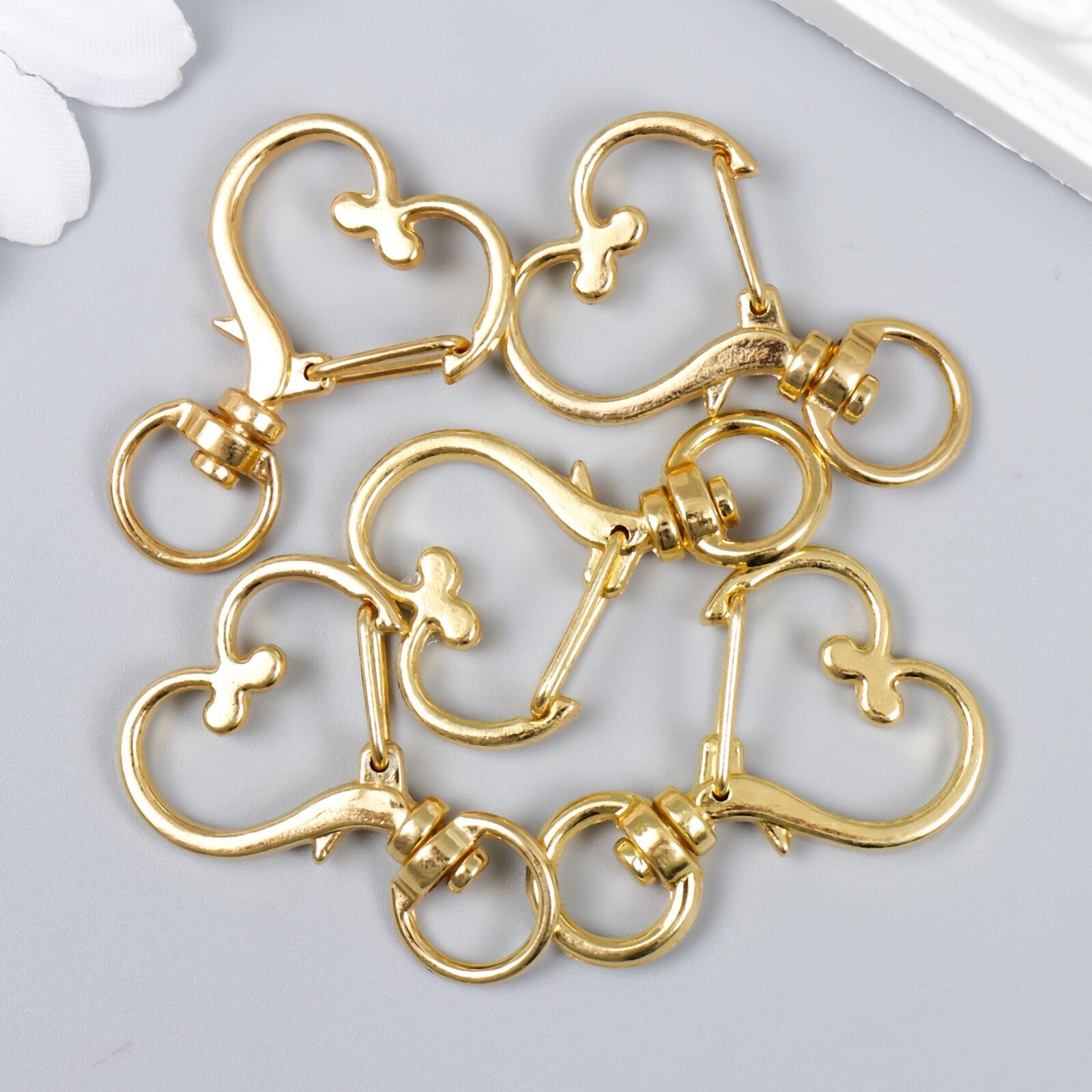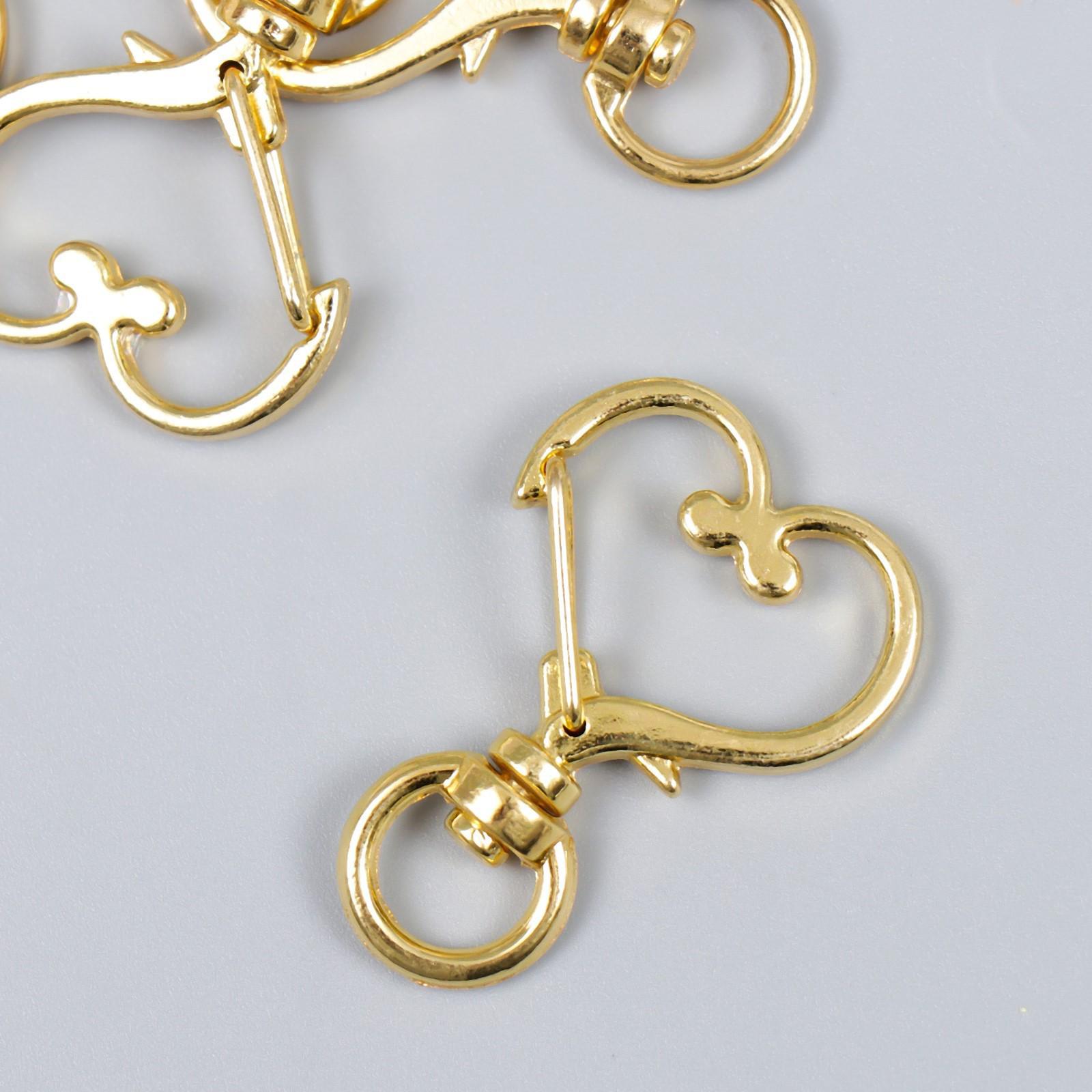 Карабин металл с кольцом "Сердце" золото 3,4х2,4 см