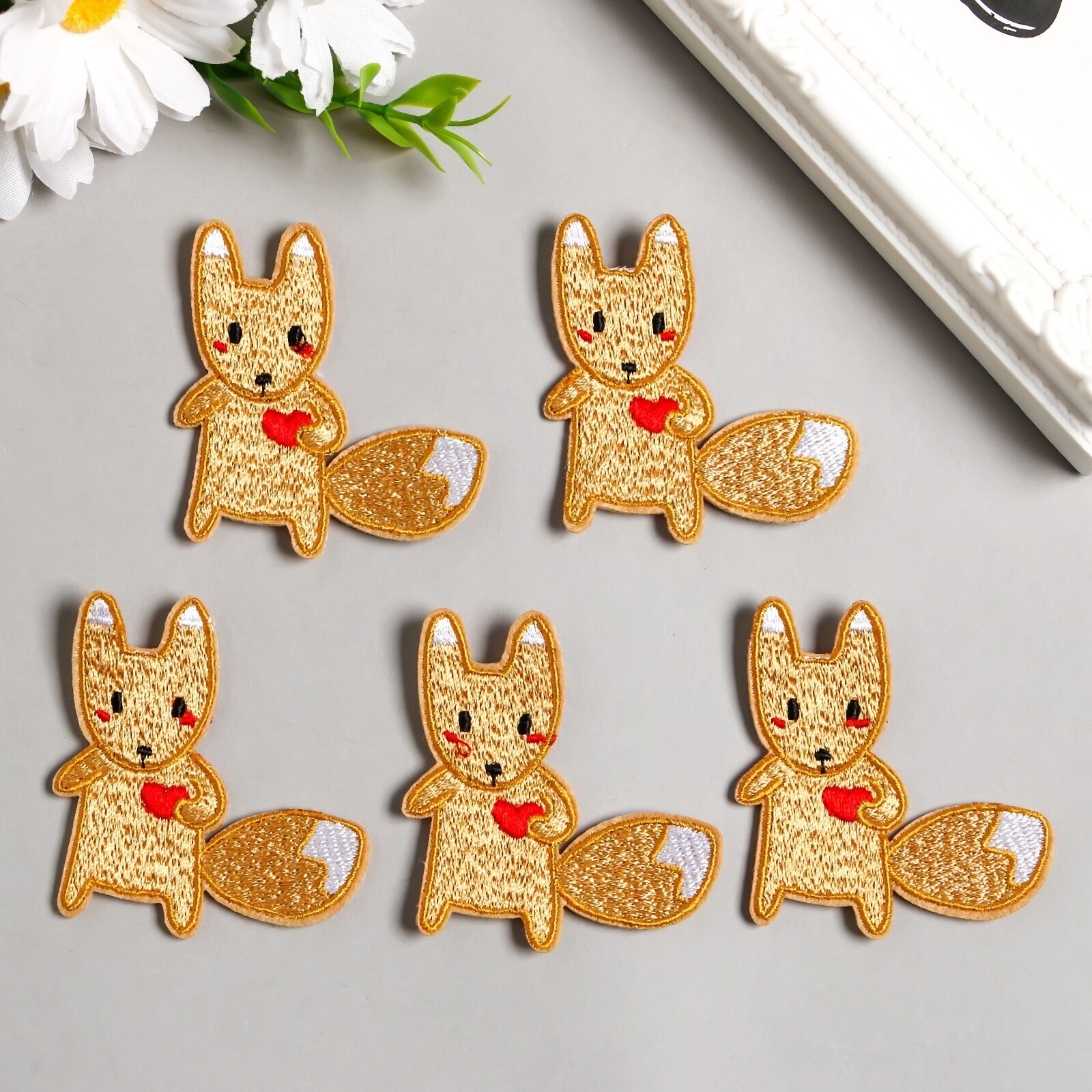 Декор для творчества текстиль вышивка "Белочка с сердечком" 5,2х5,5 см