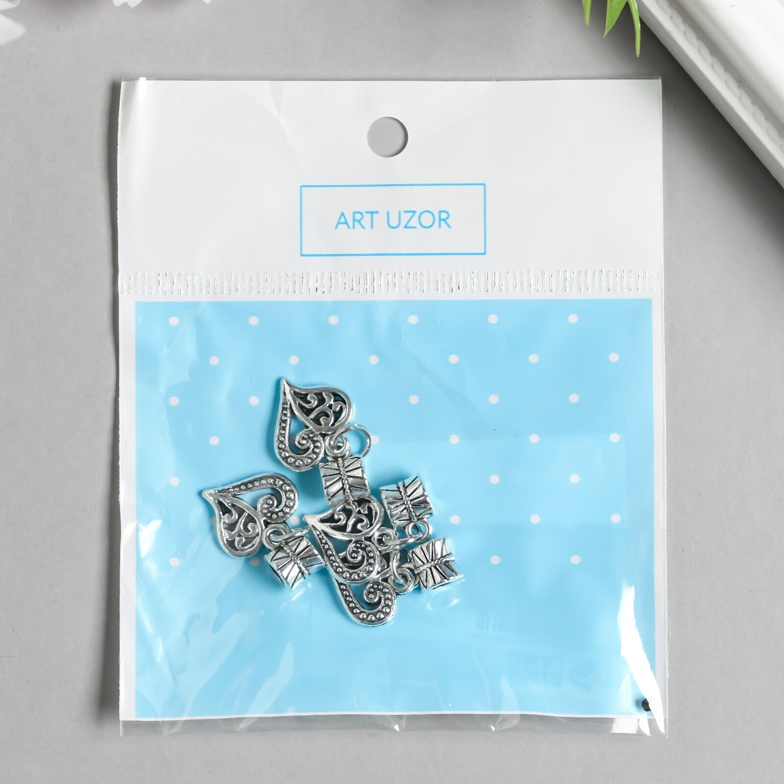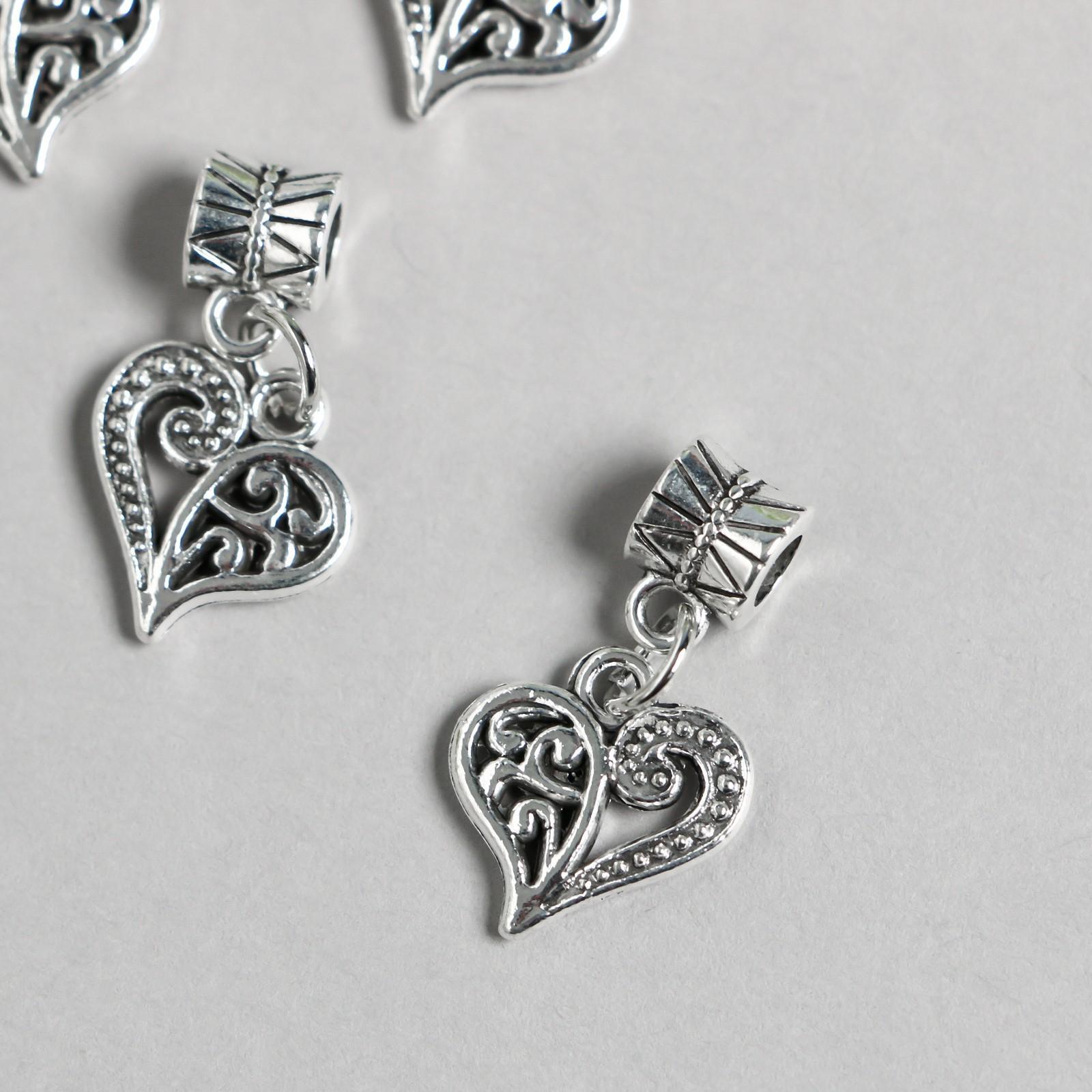 Бейл с подвеской металл для творчества "Сердце изогнутое" серебро 2,5 см
