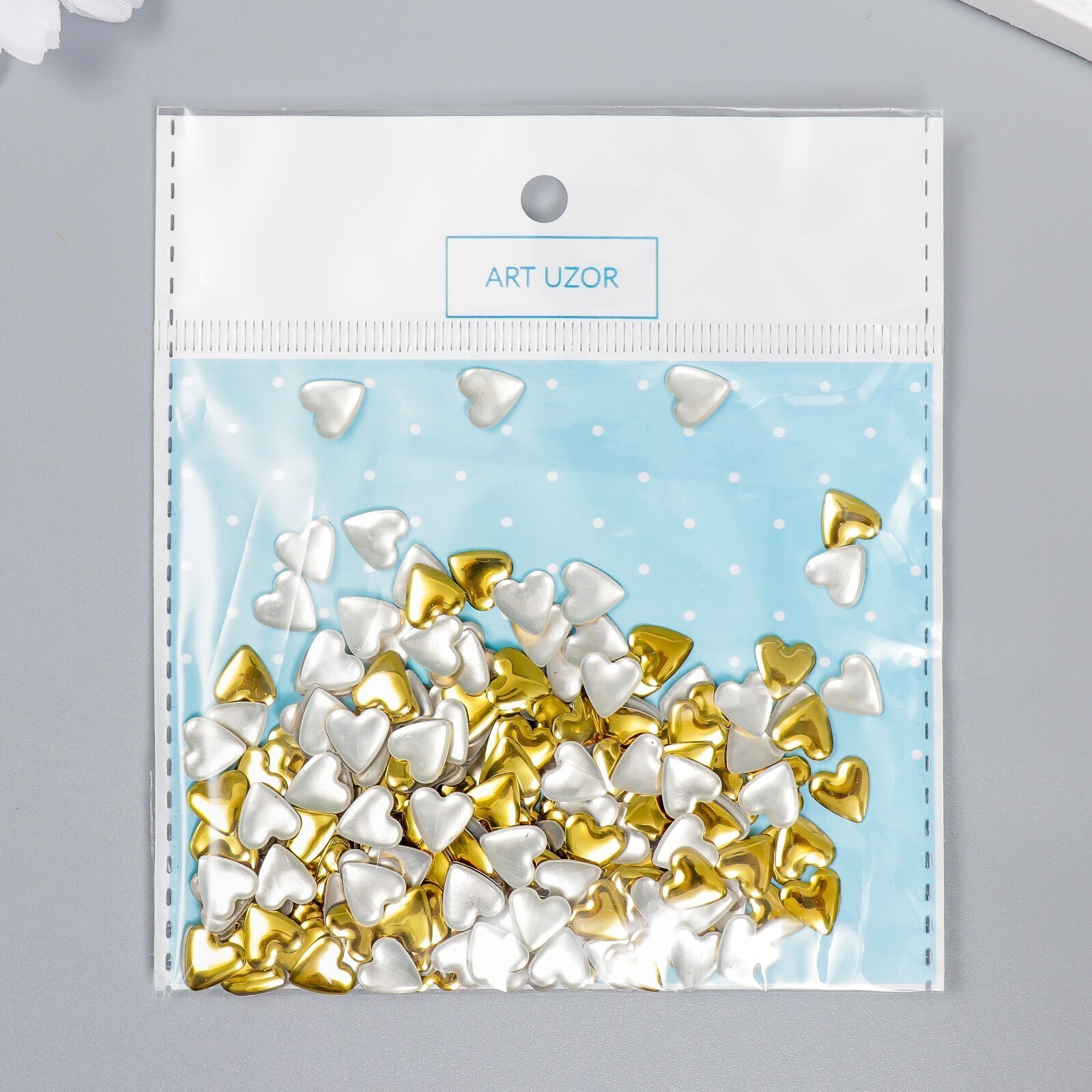 Декор для творчества металл "Сердца" золото набор 230 шт 0,8х0,8 см