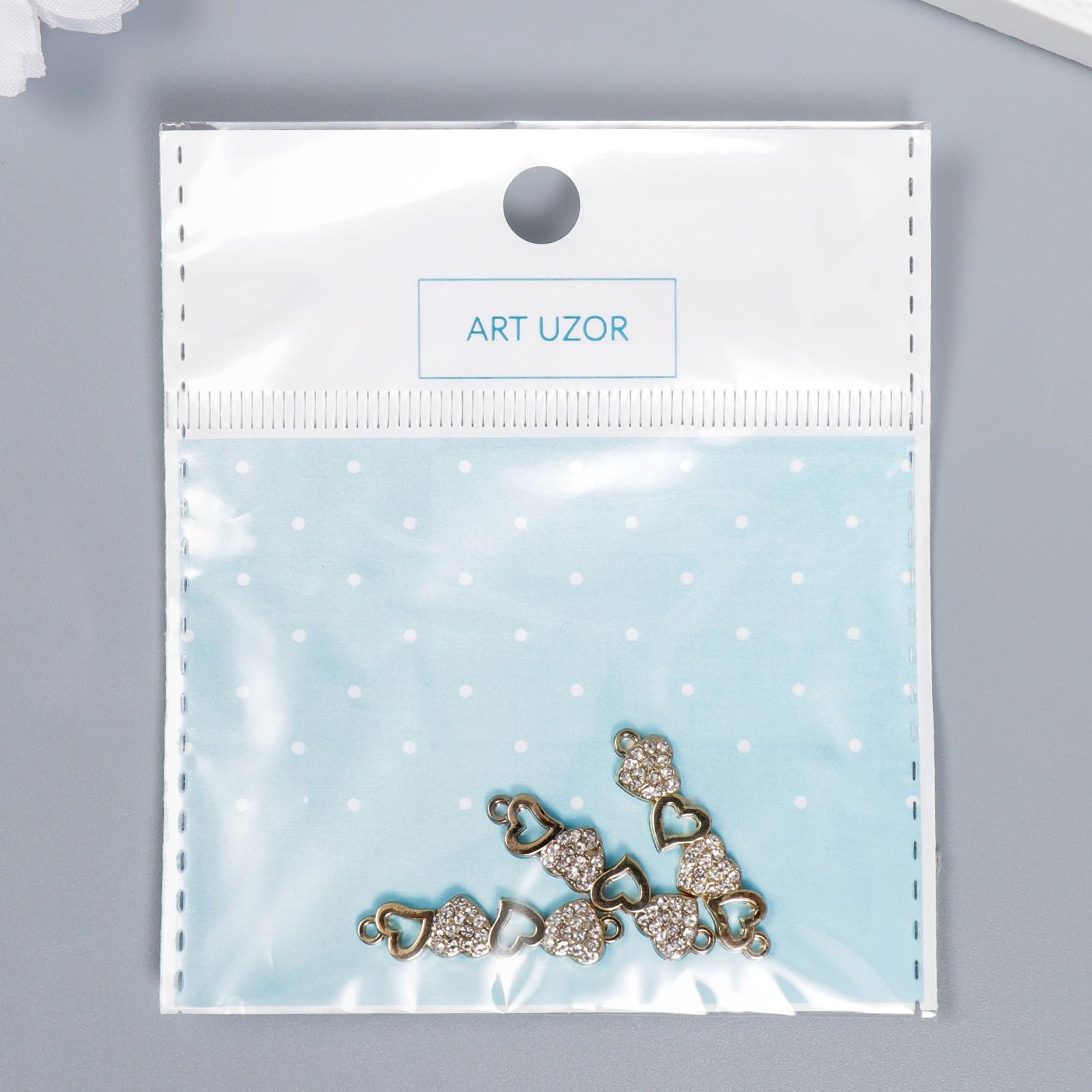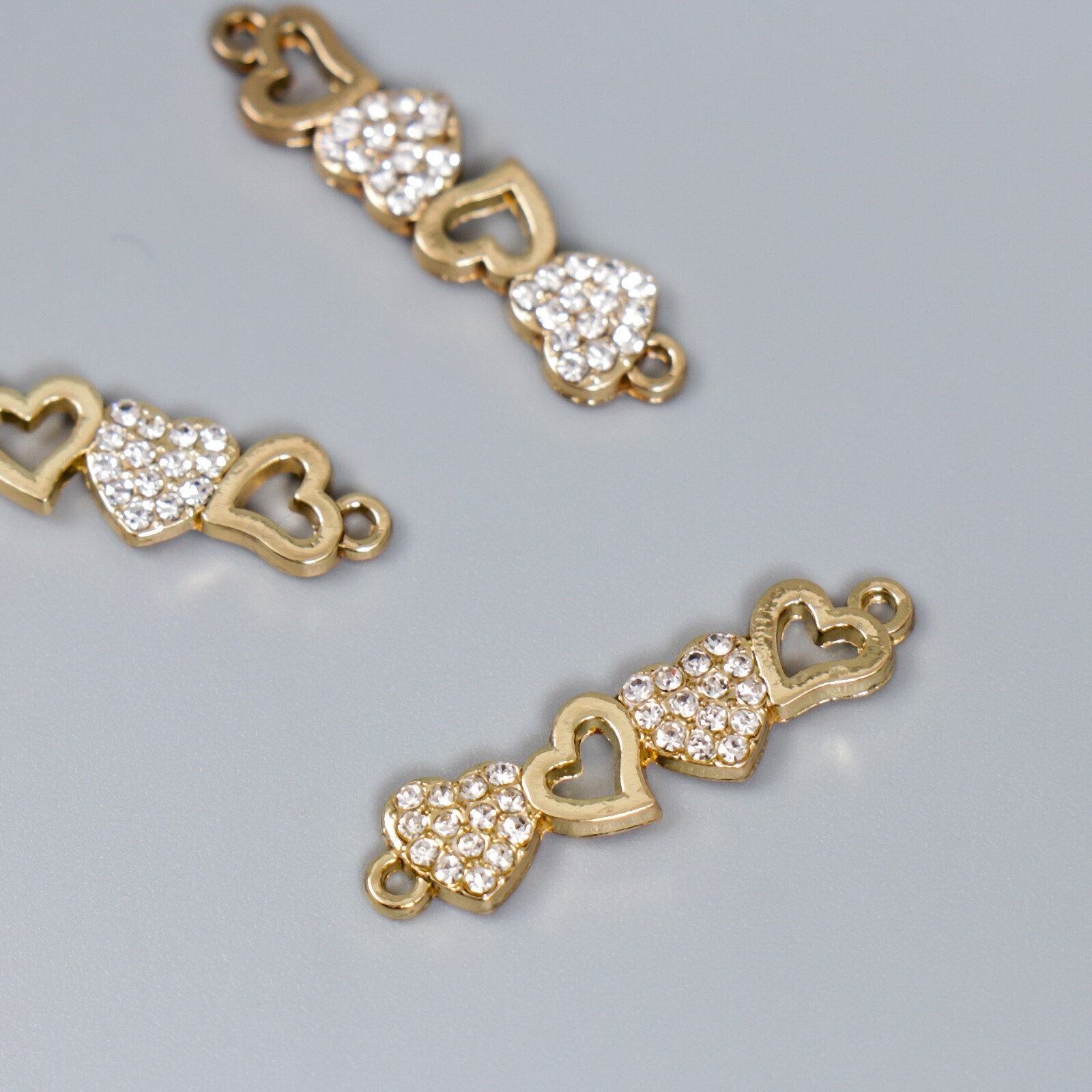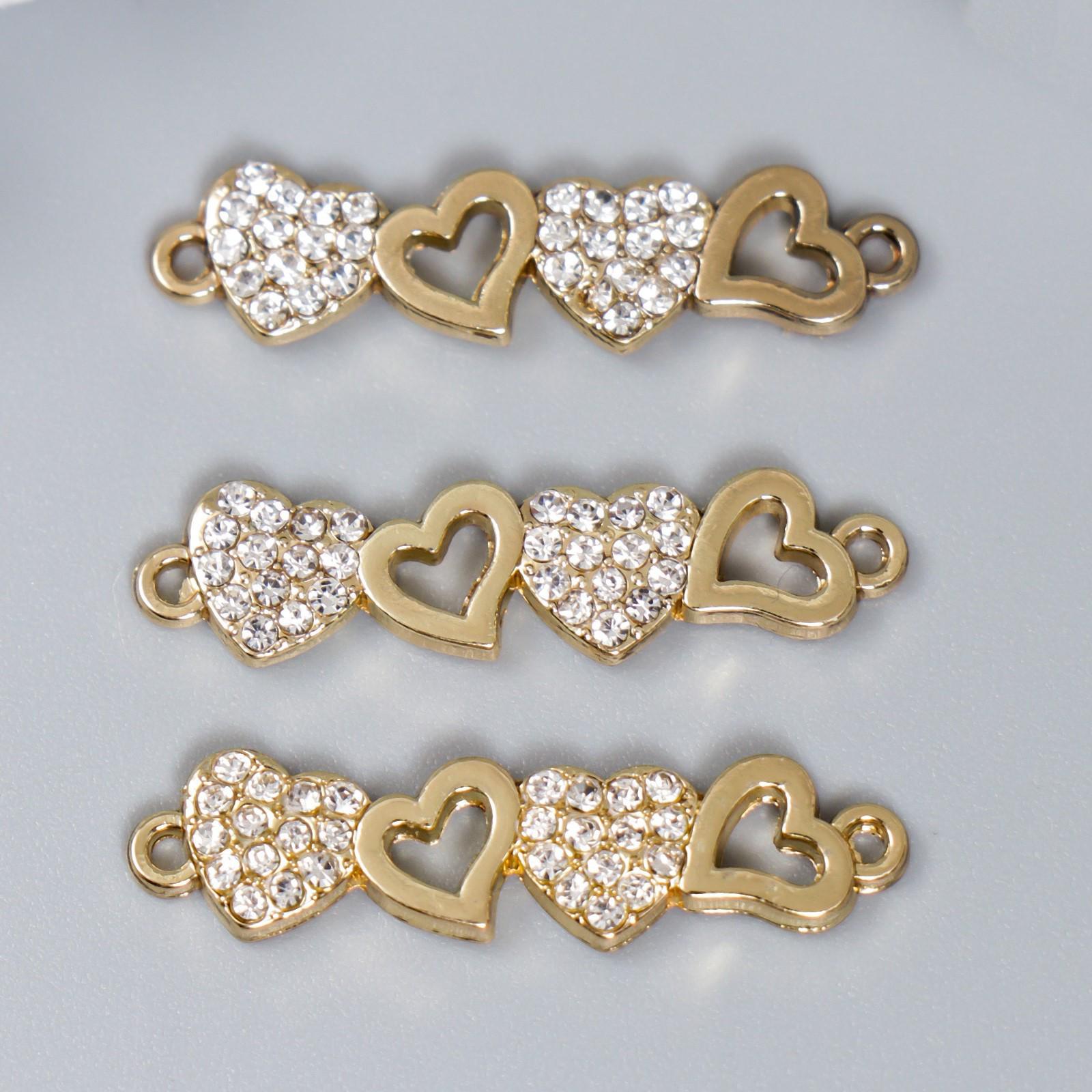 Коннектор для творчества металл 2 ушка "Гирлянда из сердец" стразы 0,6х2,7 см