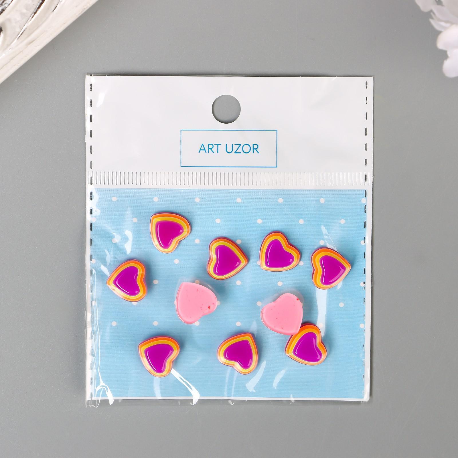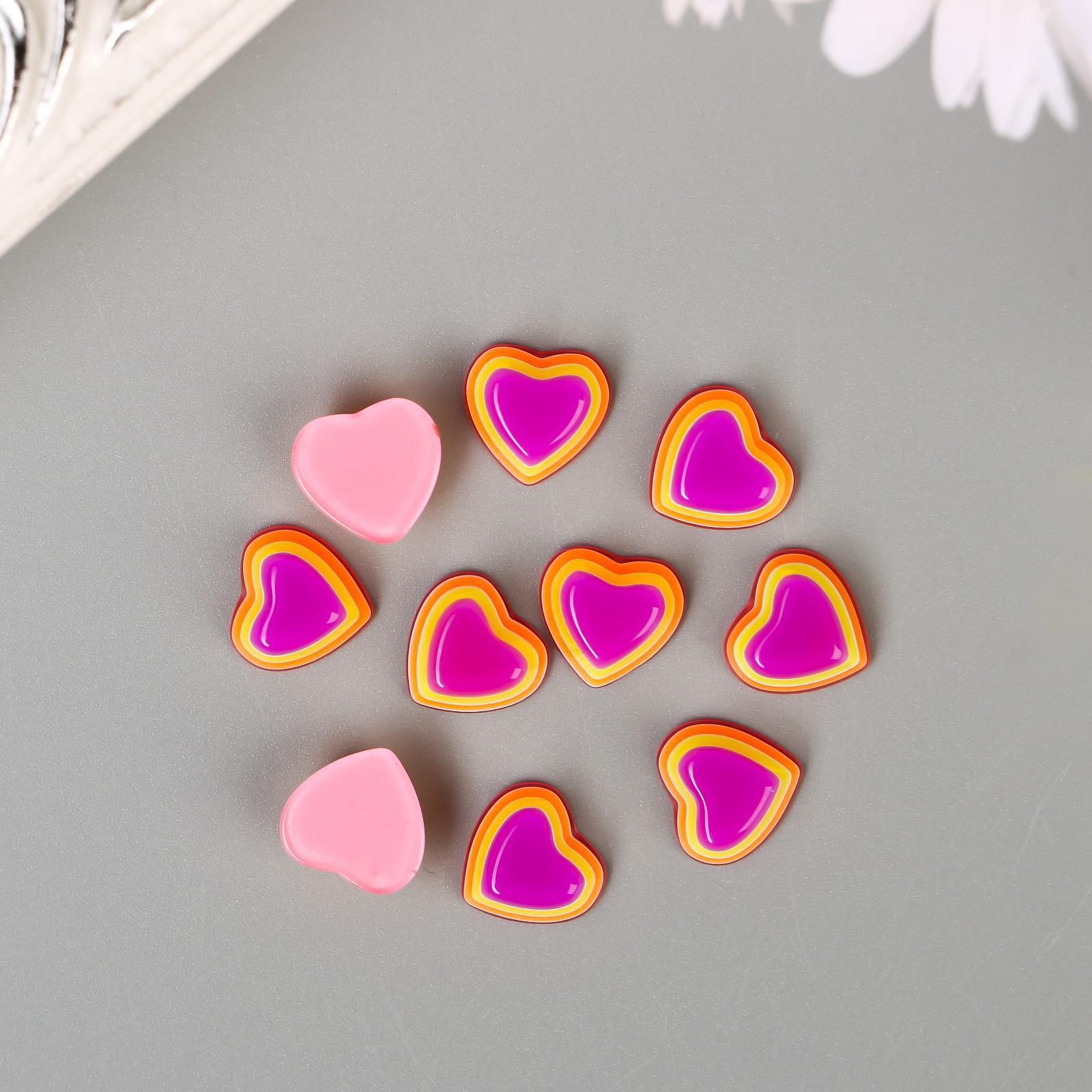 Декор для творчества пластик "Полосатые сердечки" розово-фиолетовые набор 10 шт 1,2х1,3 см
