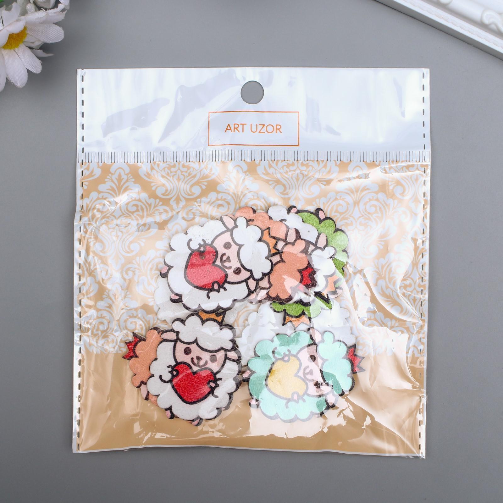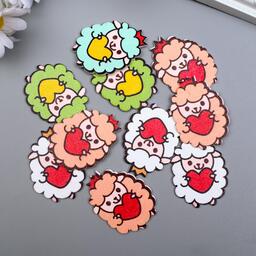 Декор для творчества дерево "Барашек с сердечком" набор 10 шт МИКС 4,1х3 см
