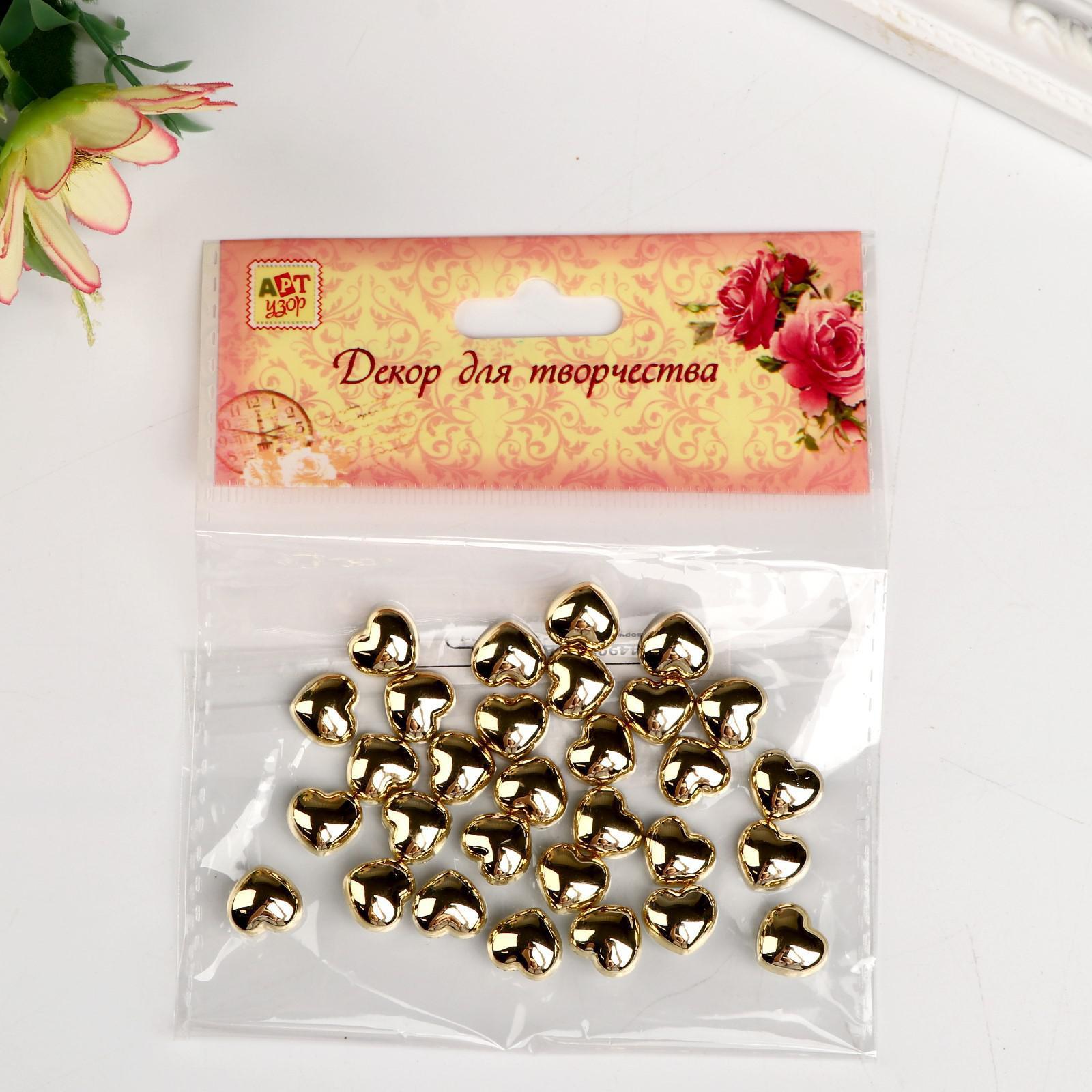 Декор для творчества пластик "Сердца" золото набор 30 шт 1х1 см