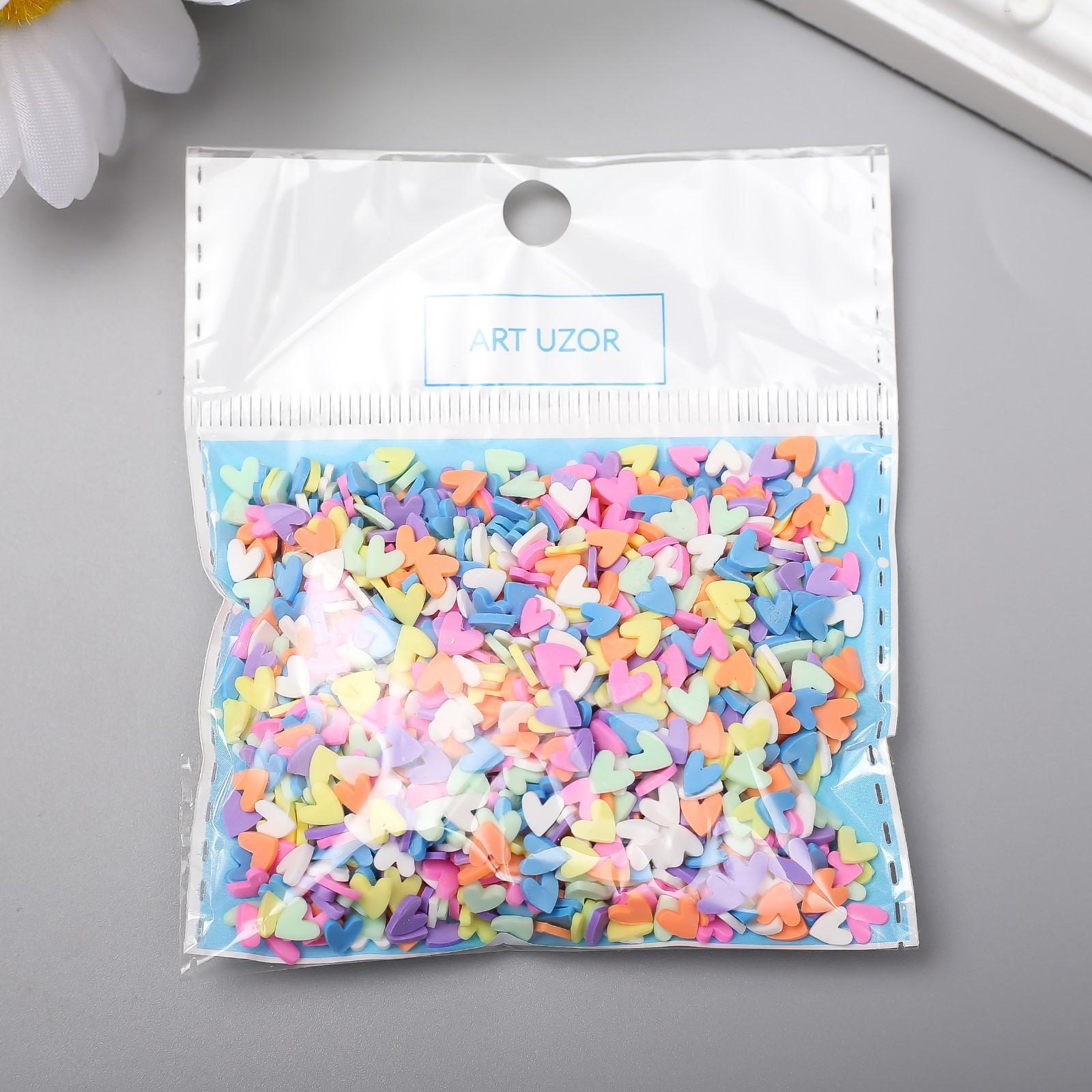 Декор для творчества пластик "Яркие сердечки" набор 20 гр МИКС