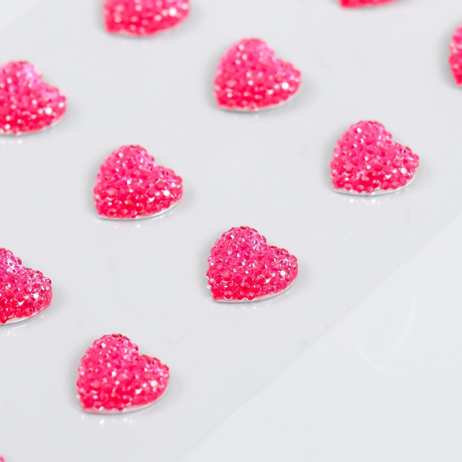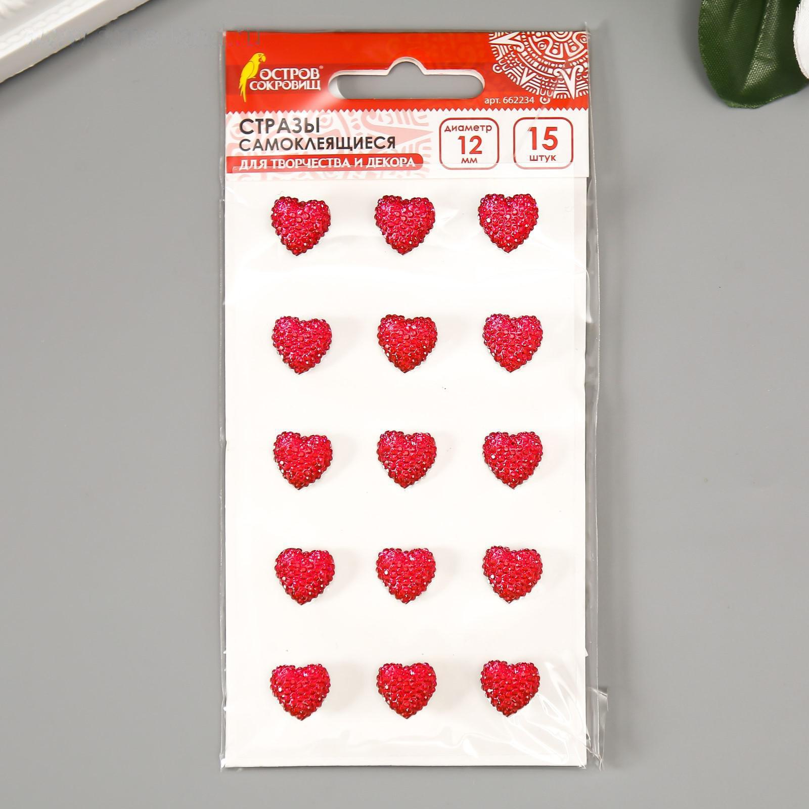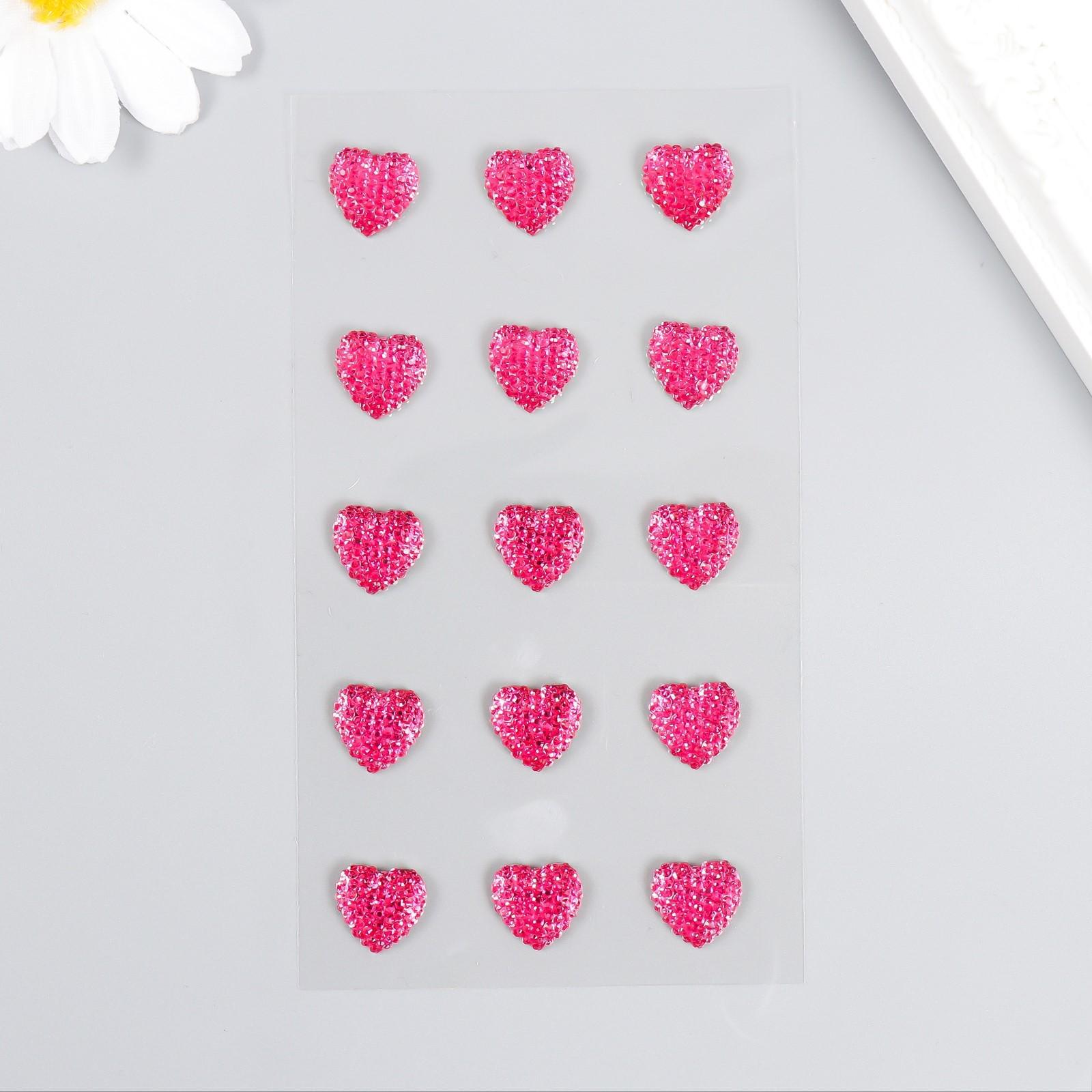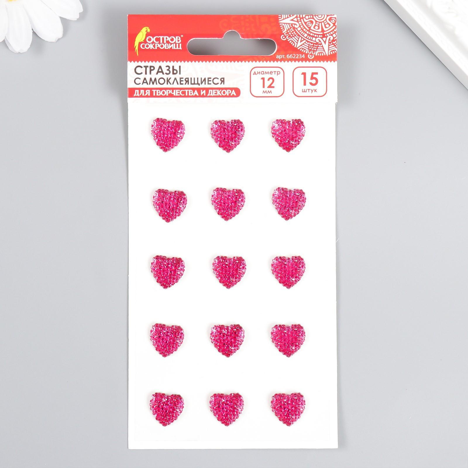 Стразы самоклеящиеся "СЕРДЦА", 12 мм, 15 штук, малиновые