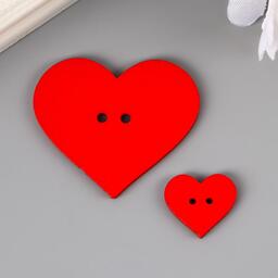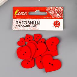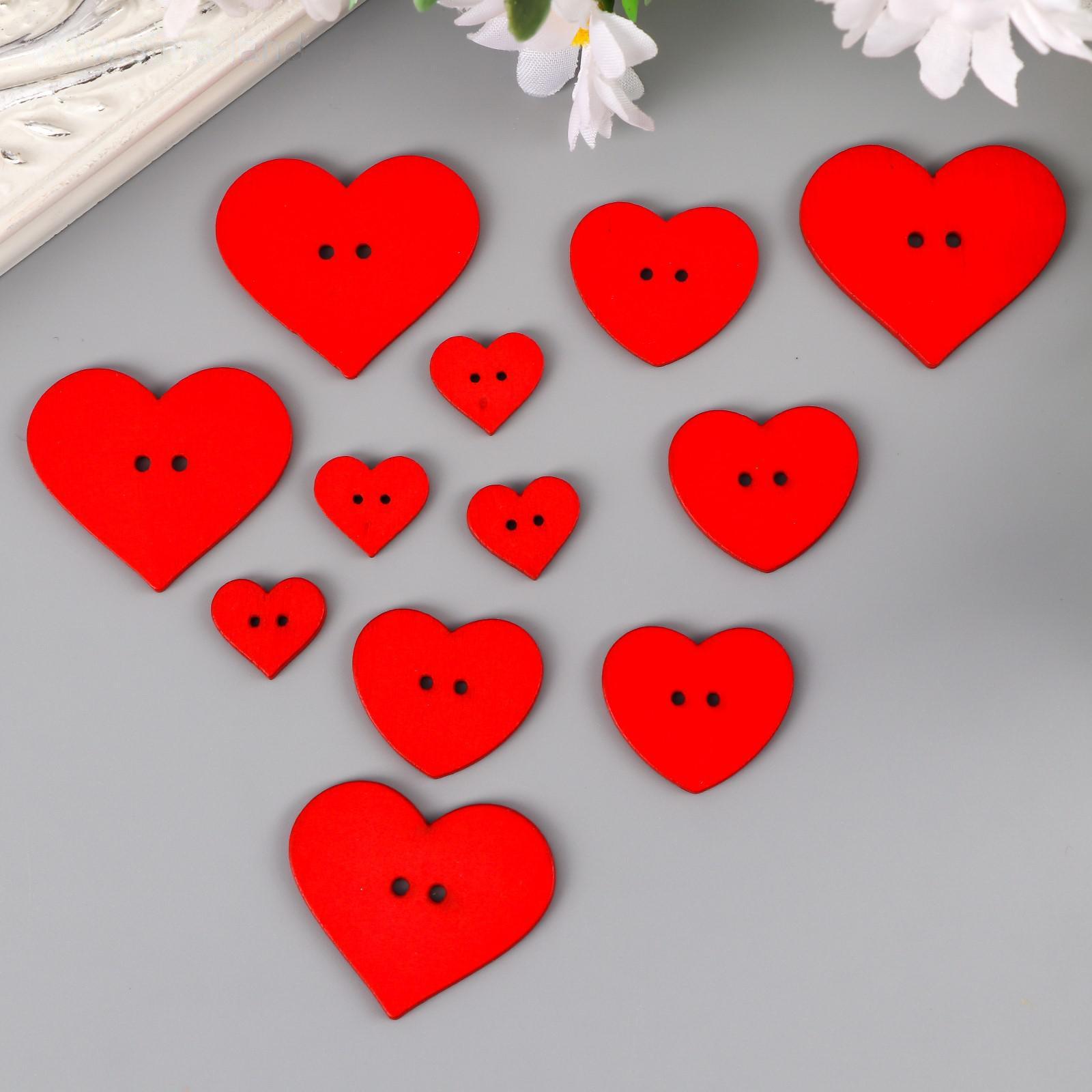 Пуговицы декоративные "Сердце", дерево (набор 12 шт) ассорти, красные