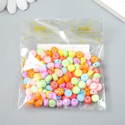 Набор бусин для творчества пластик "Сердечки и звёзды" цветные 20 гр 0,4х0,7х0,7 см