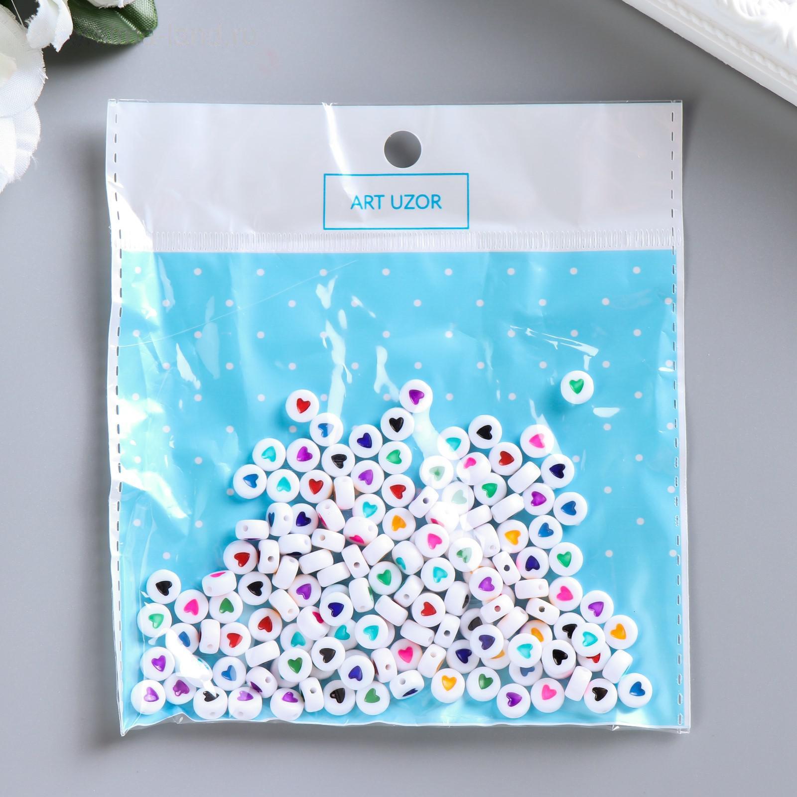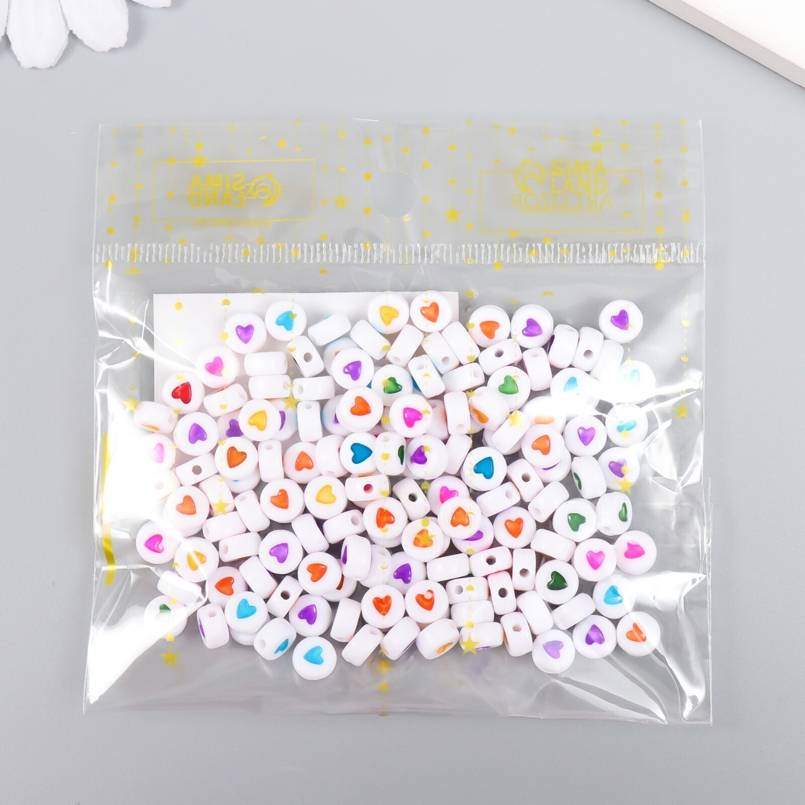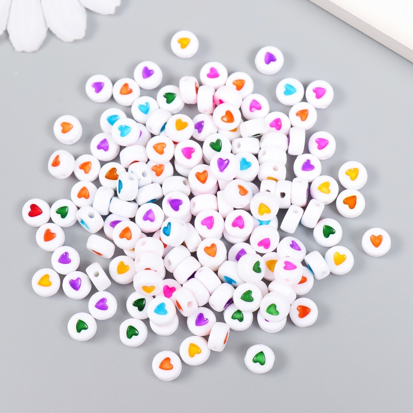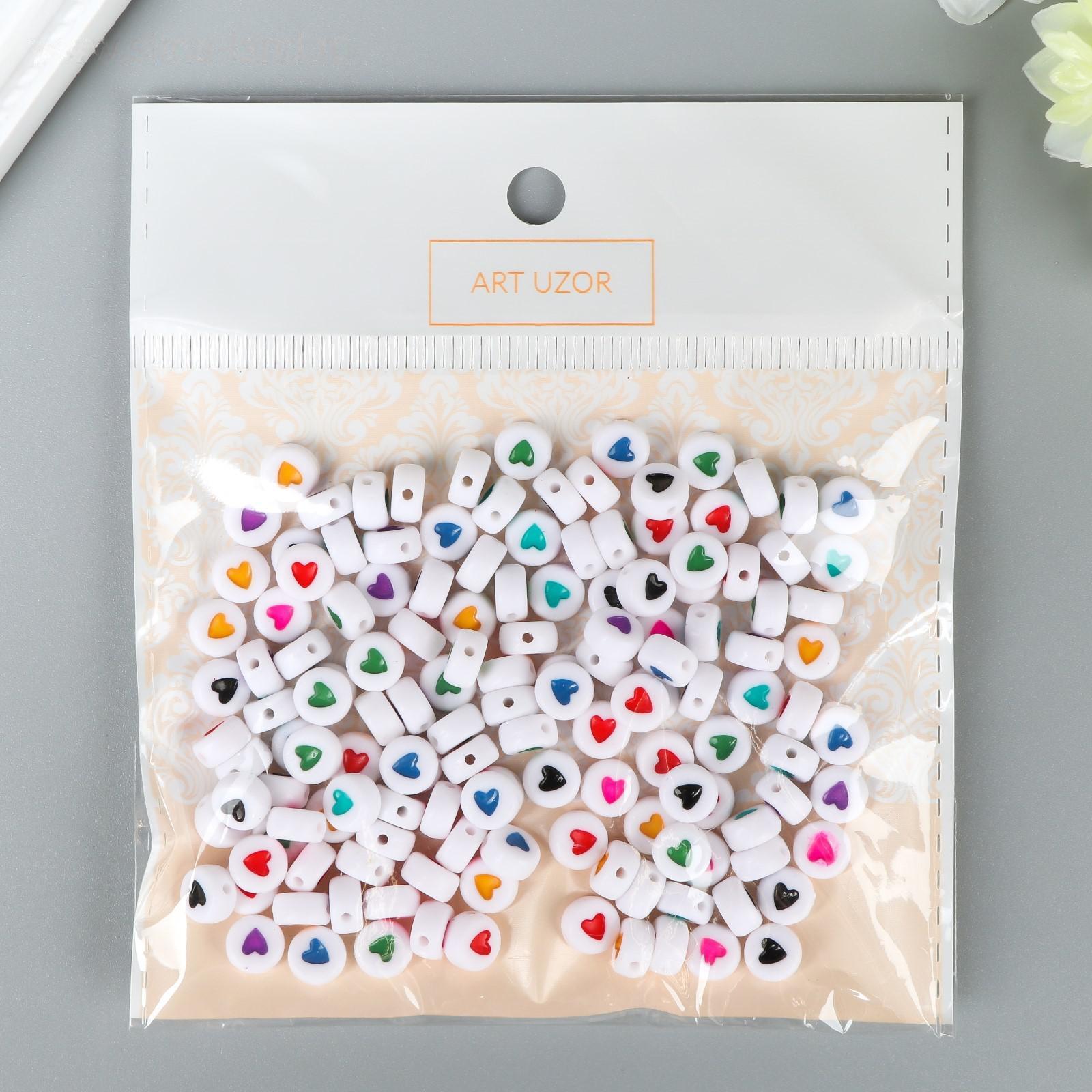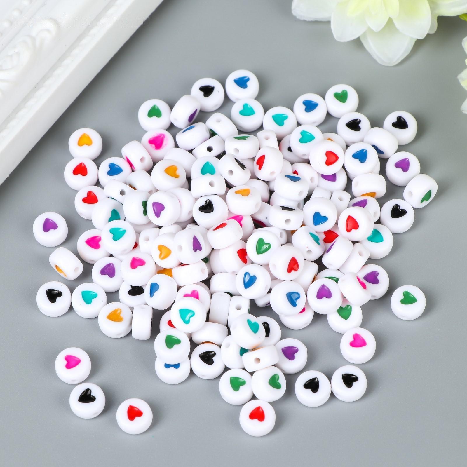 Набор бусин для творчества пластик "Сердечко в круге" разноцветные 20 гр 0,х0,7 см