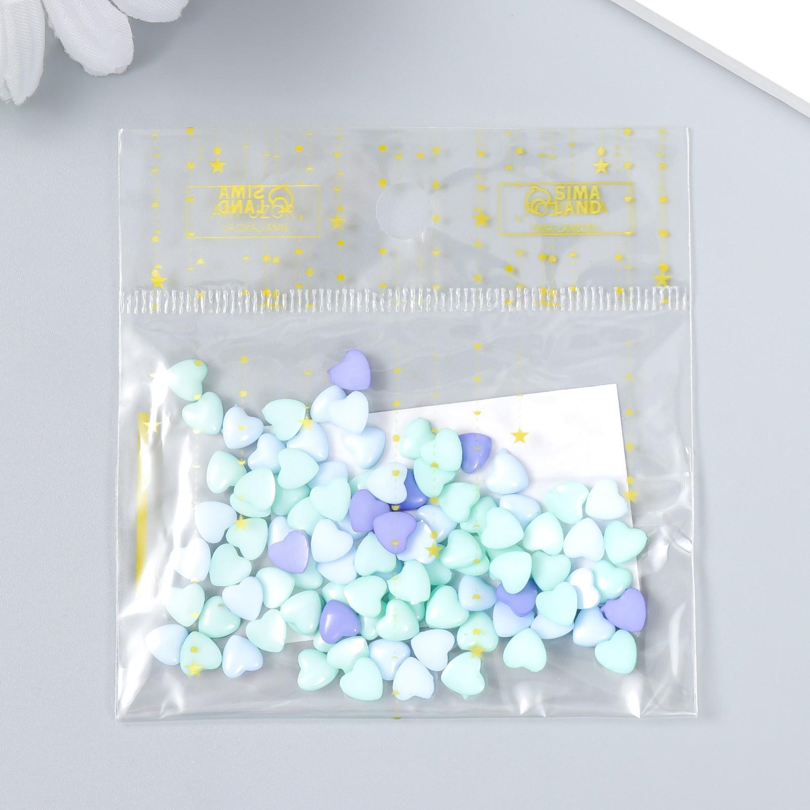 Декор для творчества пластик "Сердечки в голубых тонах" набор 100 шт 0,6х0,6 см