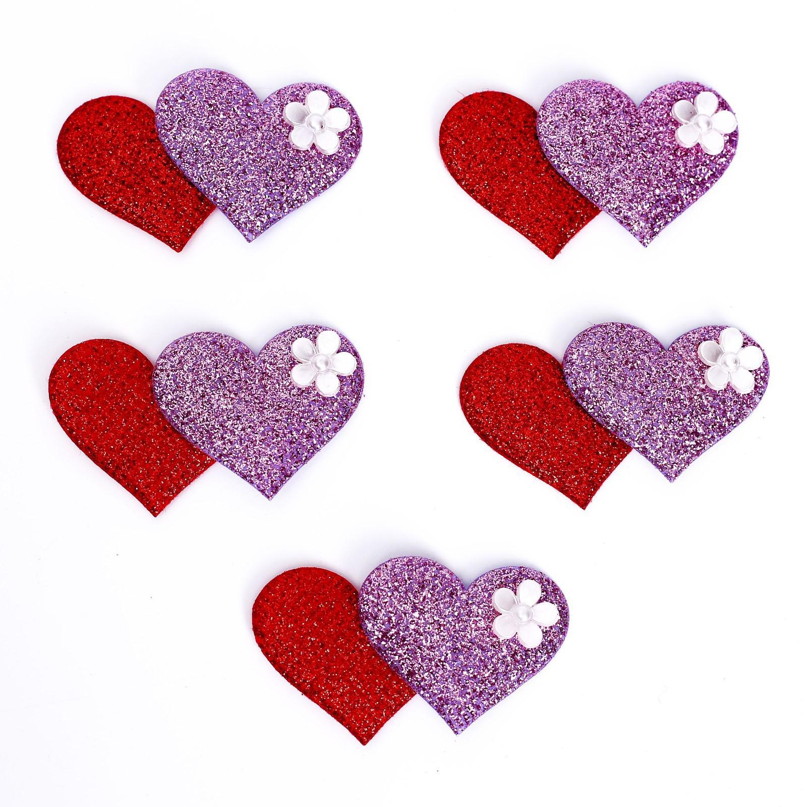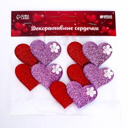 Сердечки декоративные, набор 5 шт., размер 1 шт: 5 × 3,5 см, цвет красно-розовый