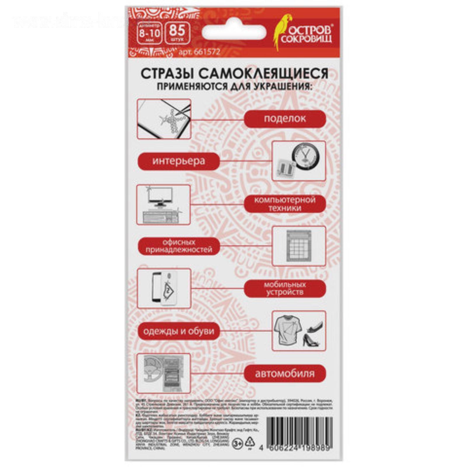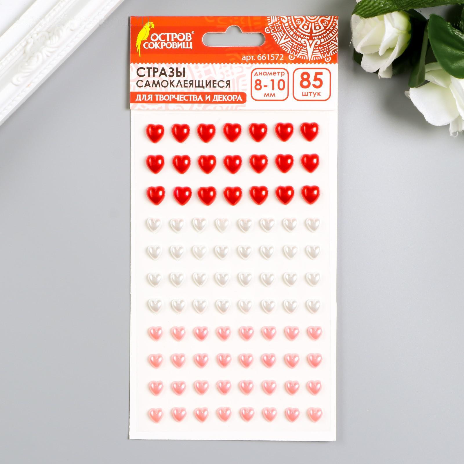 Стразы самоклеящиеся "Сердце", ассорти, 8-10 мм, 85 шт.