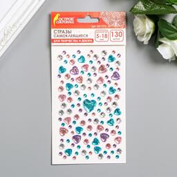 Стразы самоклеящиеся "Сердечки", ассорти, 5-18 мм, 130 шт.