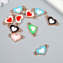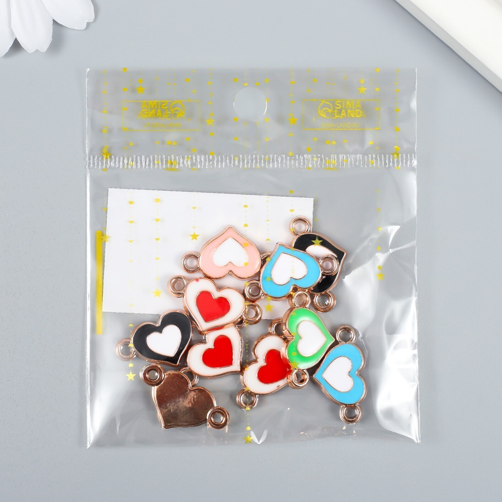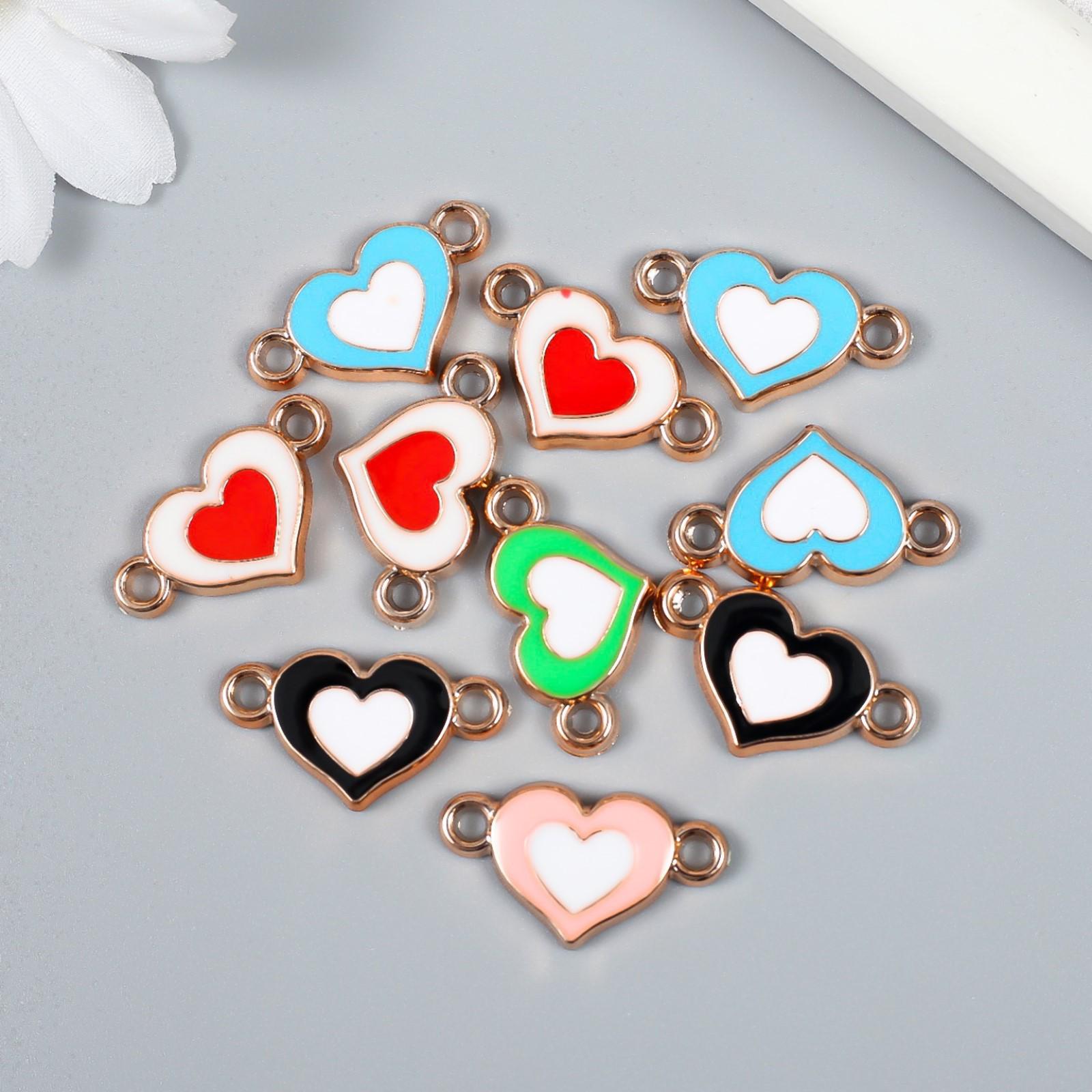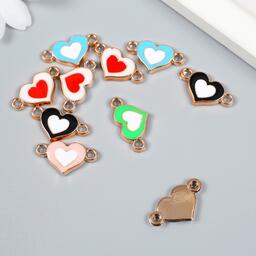 Коннектор для творчества пластик под металл "Двойное сердце" МИКС набор 10 шт 1,4х2,4 см