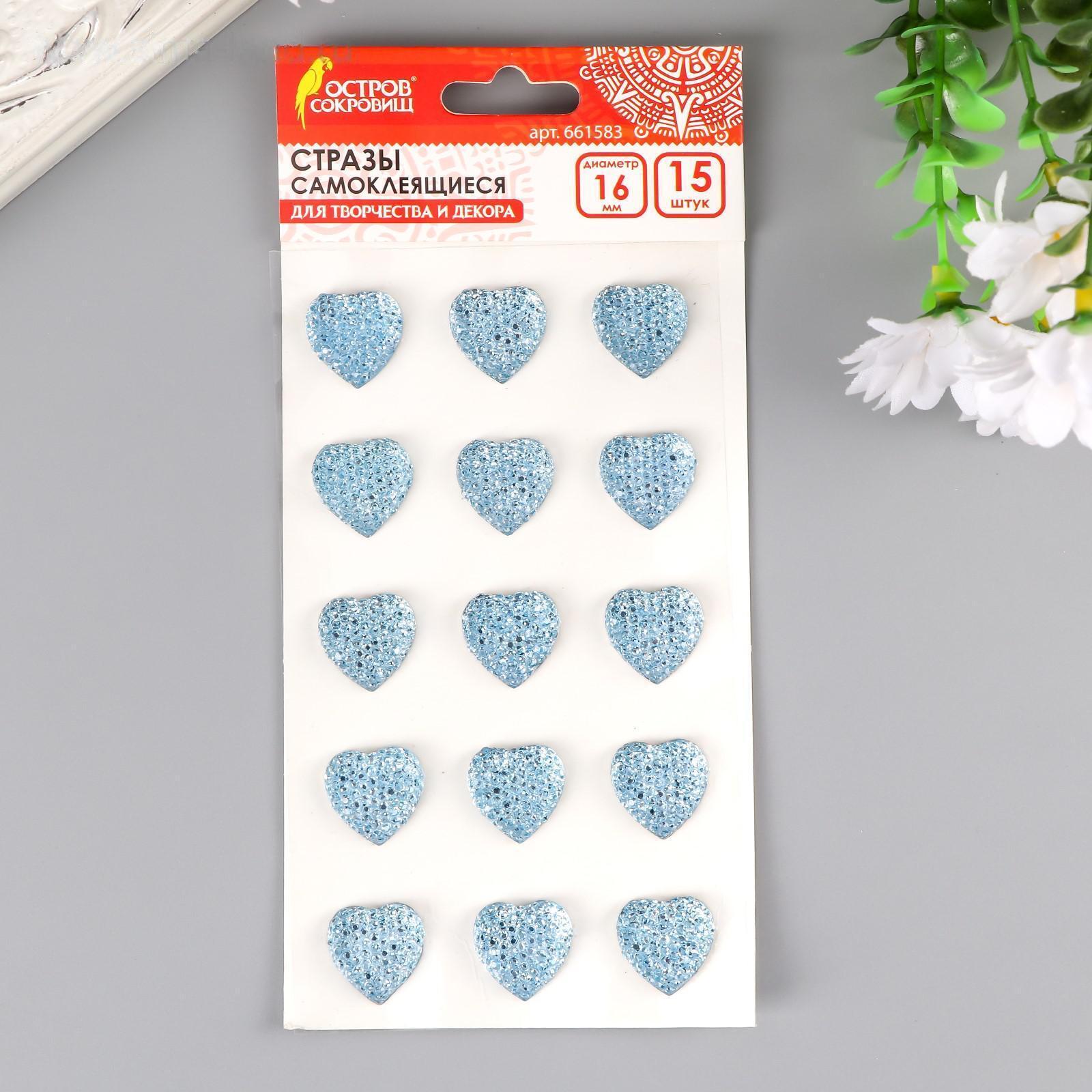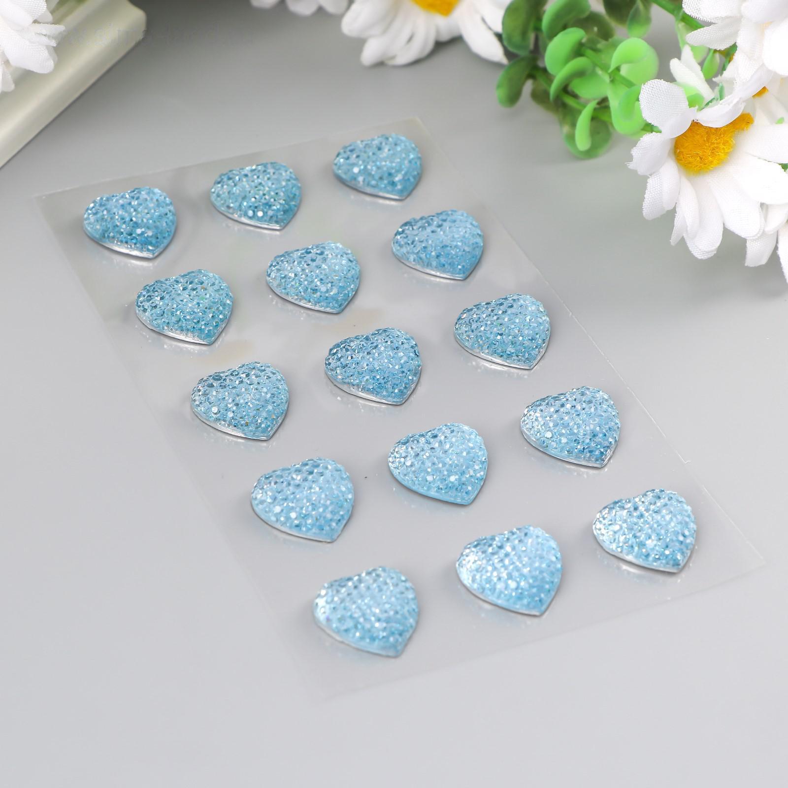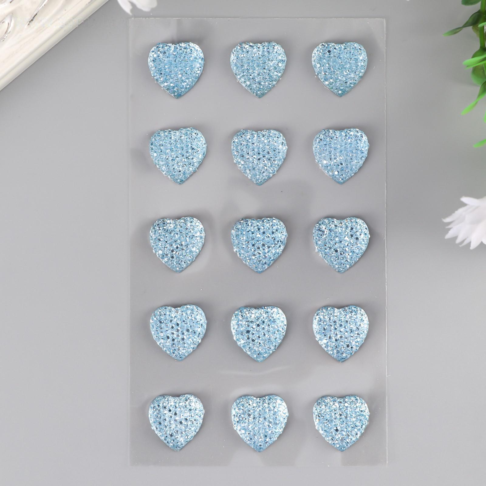 Стразы самоклеящиеся "Сердце", голубые,16 мм (набор 15 шт)