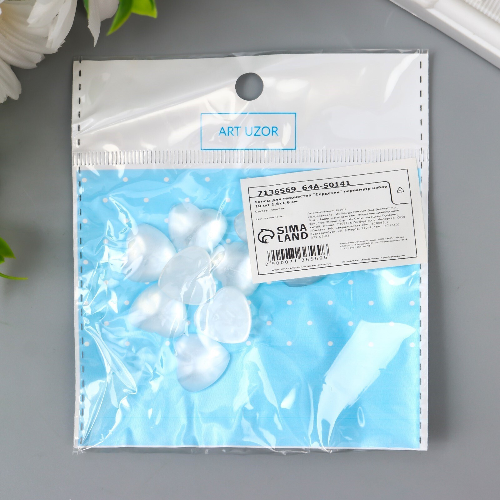 Топсы для творчества пластик "Сердечки" перламутр набор 10 шт 1,6х1,6 см