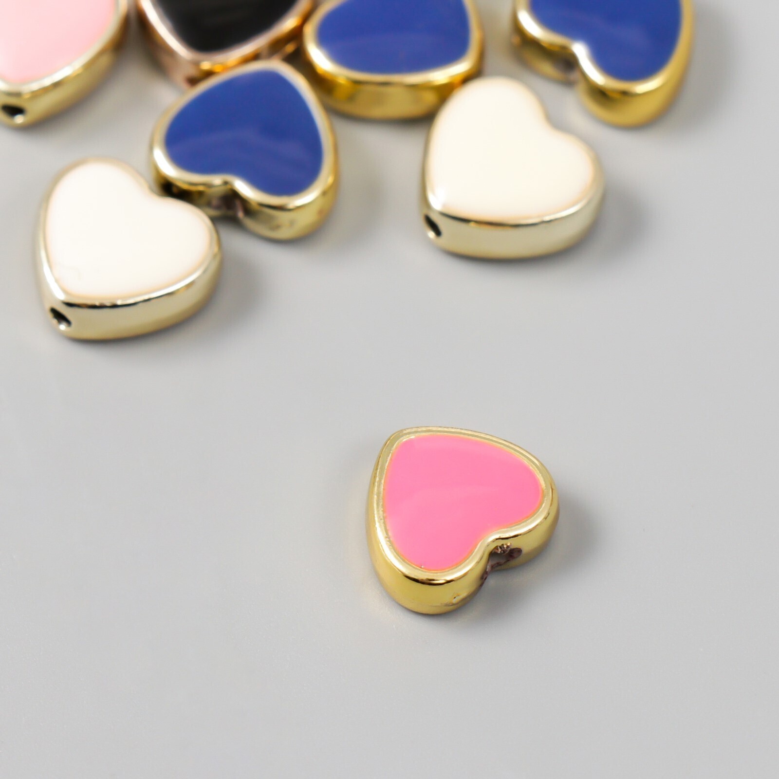 Набор бусин для творчества пластик "Сердечки, яркий глянец" МИКС 10 шт 1,2х1,2 см