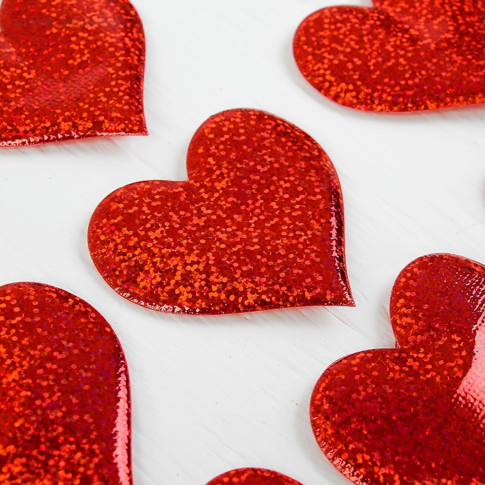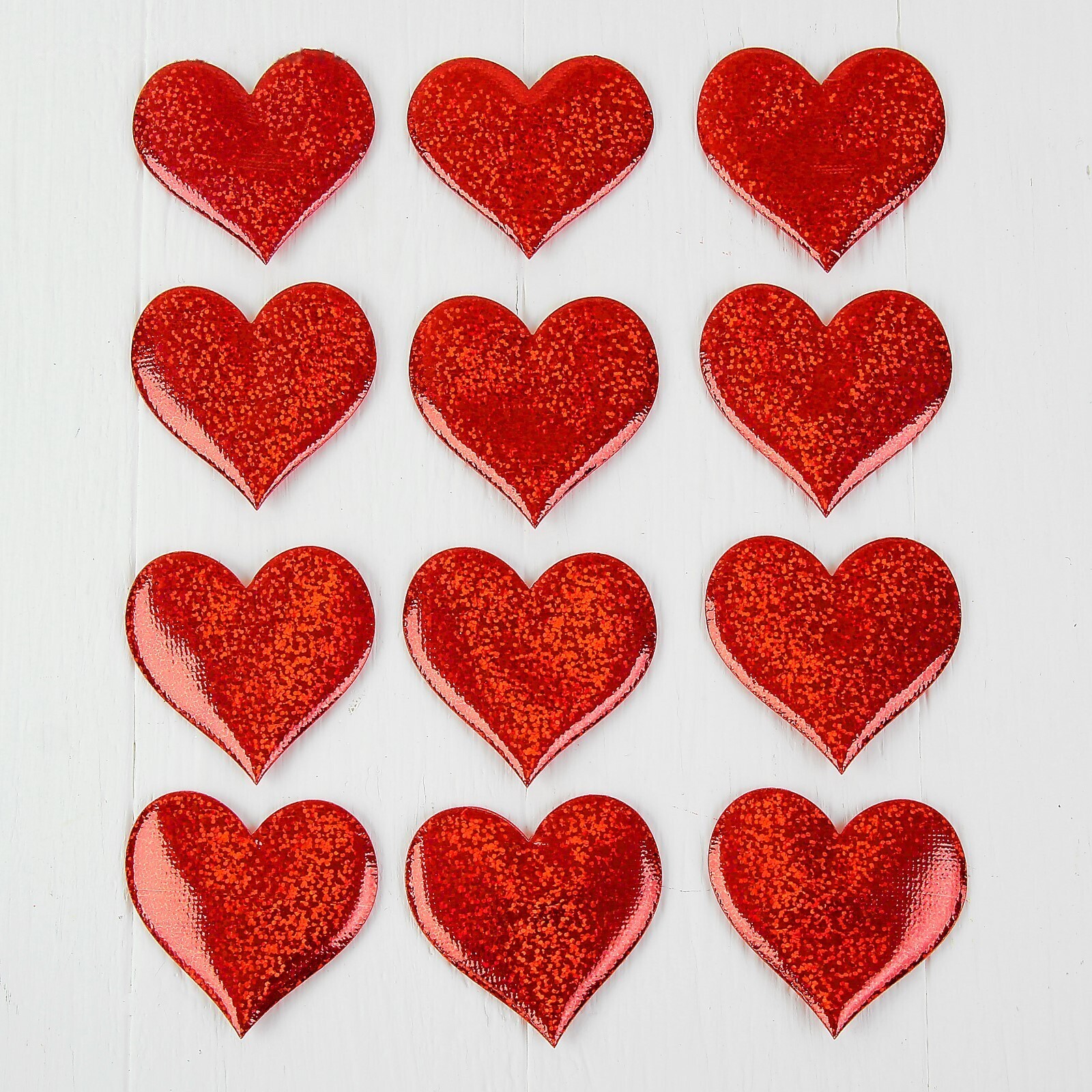 Сердечки декоративные, набор 12 шт., размер 1 шт: 6,5×6 см, цвет красный