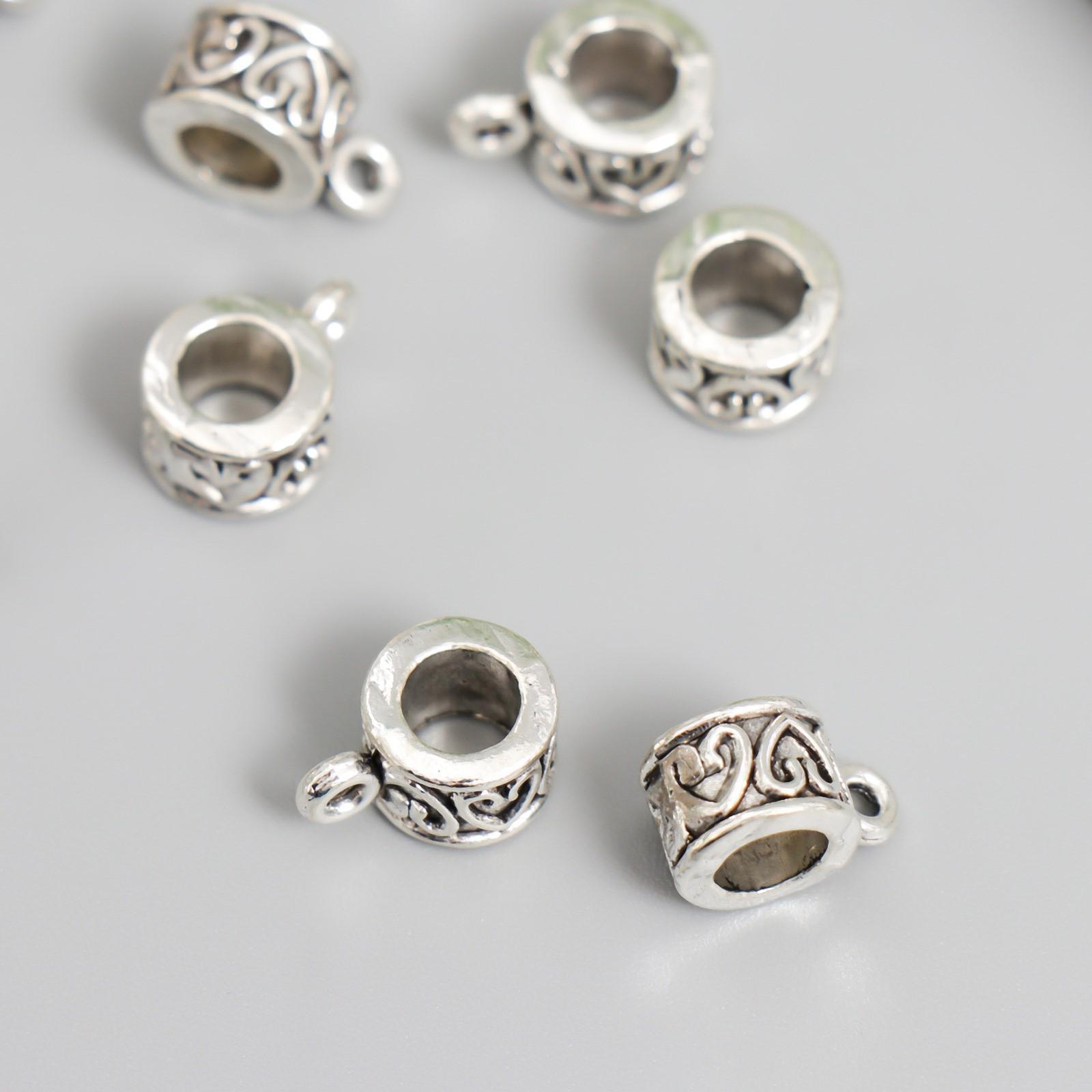 Бейл (держатель д/кулона) металл д/творчества "Сердечки" серебро набор 10 шт 1,2х,06х0,9 см 788005