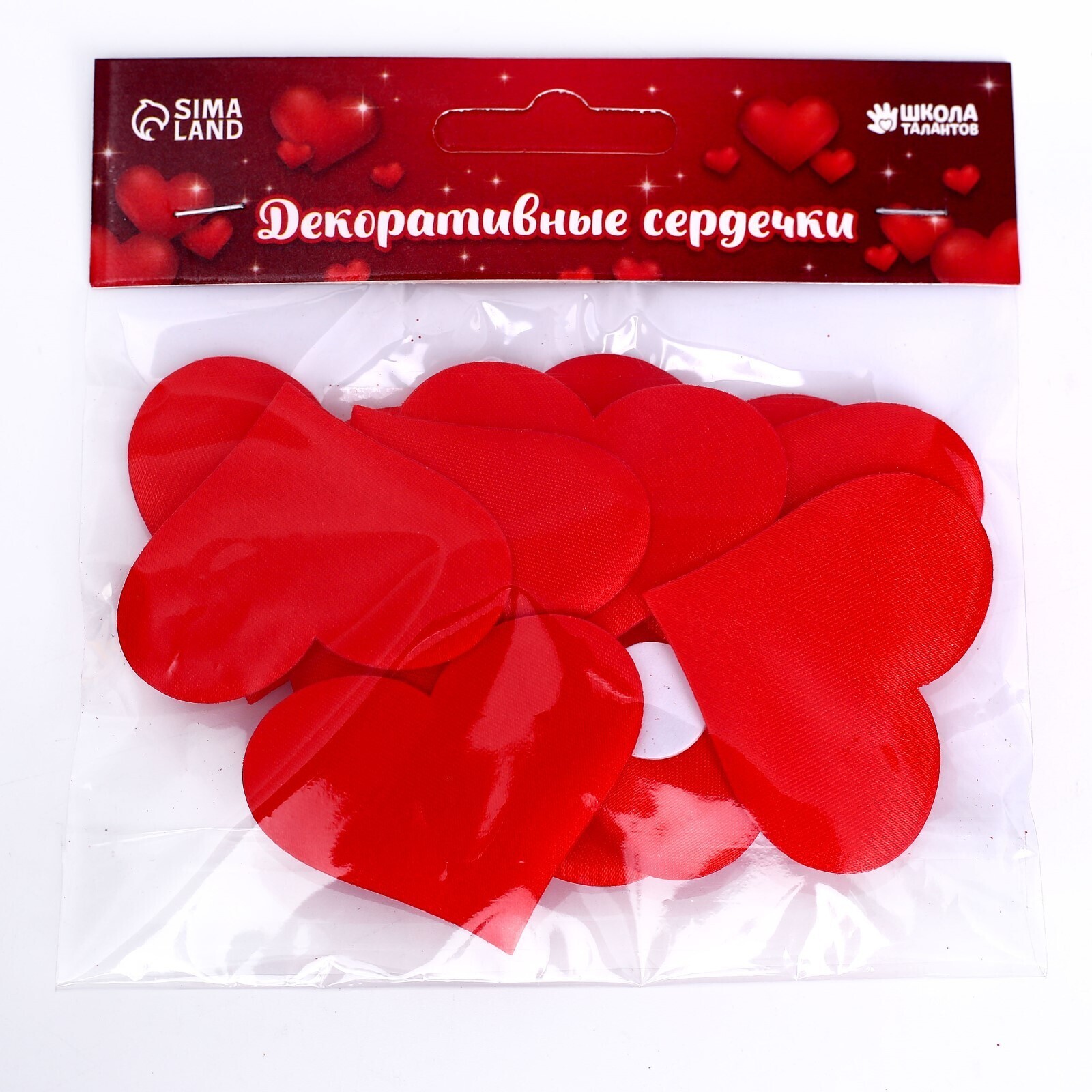 Сердечки декоративные, на клеевой основе, набор 10 шт., размер 1 шт: 5 × 4,5 см, цвет красный