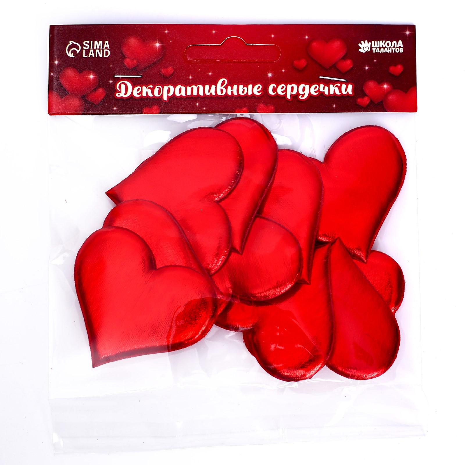 Сердечки декоративные, набор 10 шт., размер 1 шт: 5 × 4,5 см, цвет красный с отливом